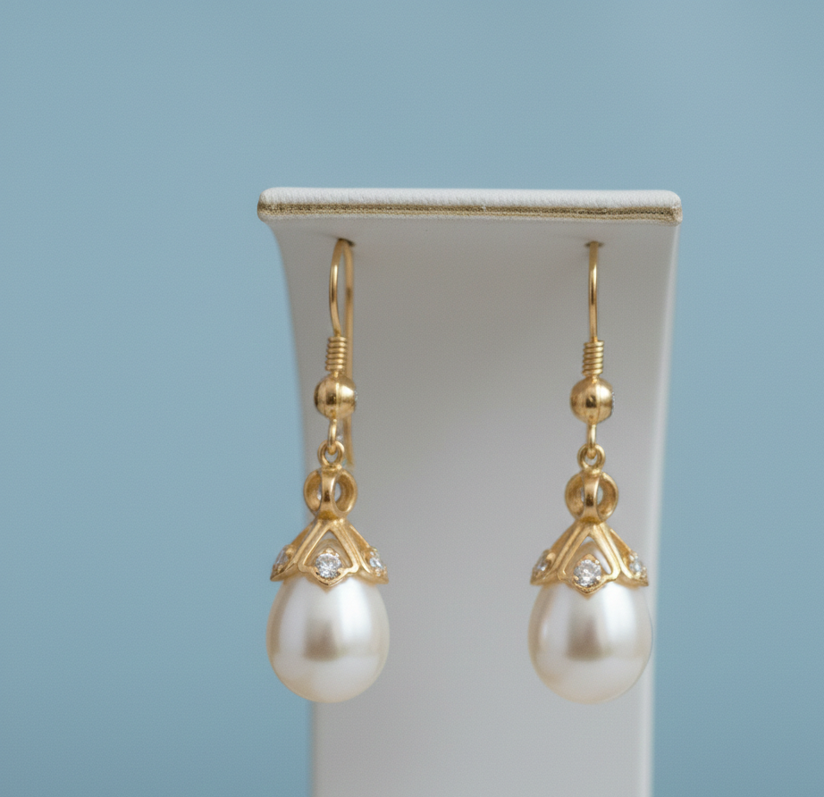 Product Name:Elegant Natural 10mm Round Pearl CZ Earrings,