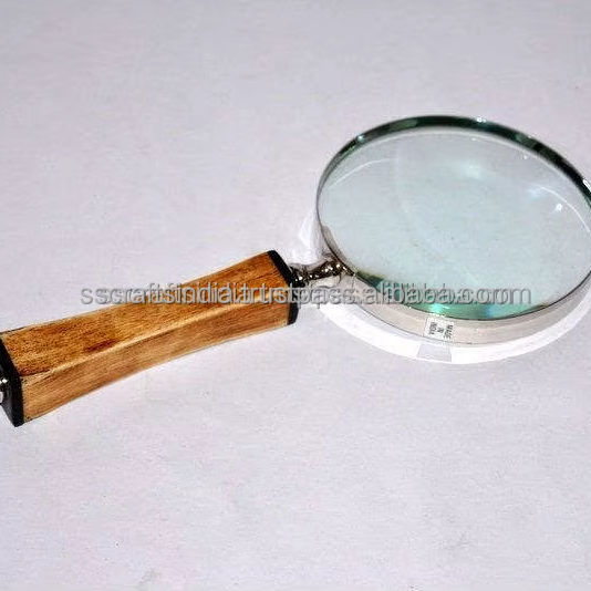 Loupe de lecture en laiton de style vintage avec manche en bois verre optique de poche Logo personnalisé cadeau pour bureau d'étude et décoration