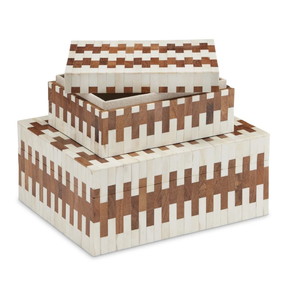 Boîte à bijoux décorative à motif indien en incrustation de résine marron et ivoire de style vintage pour le stockage et les cadeaux