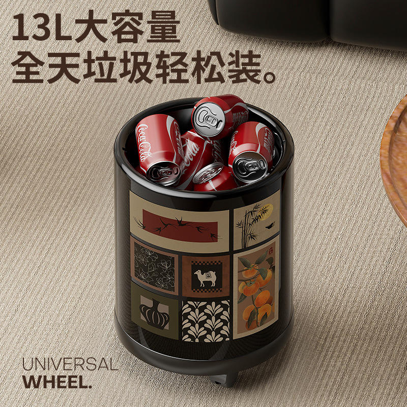 Poubelle cylindrique de style vintage avec couvercle et roulettes pour cuisine, salon, chambre à coucher, usage intérieur, capacité de 1,05 kg