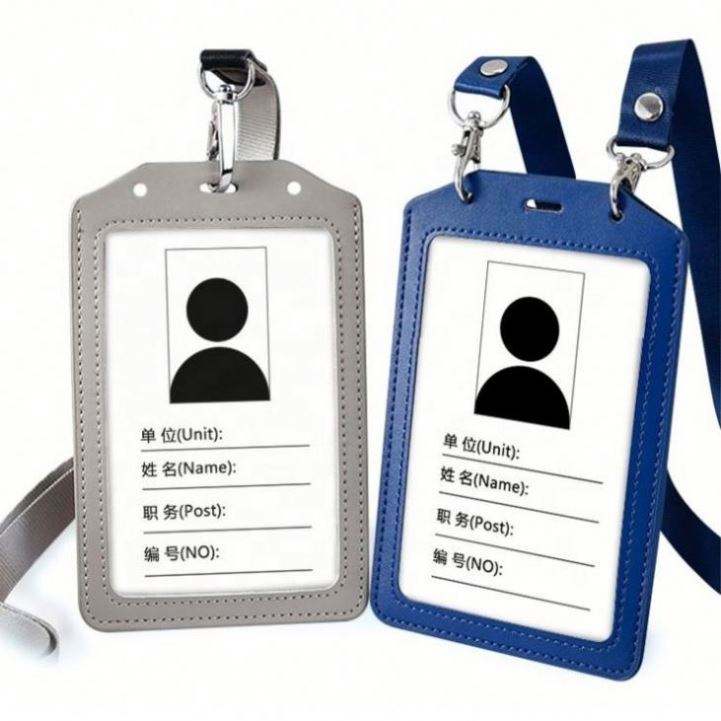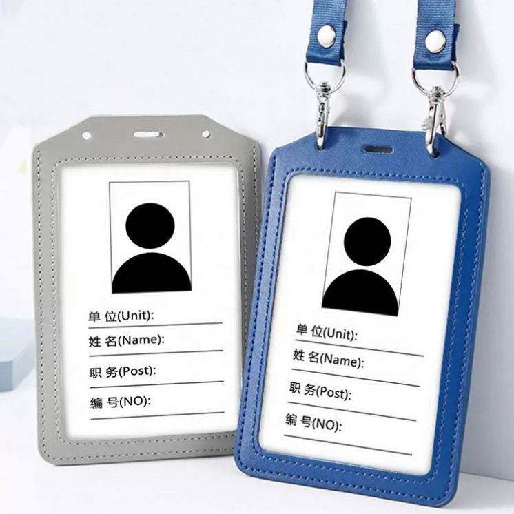 Porte-badge vertical double en cuir PU de style vintage avec protection RFID, porte-cartes d'identité et de crédit transparent