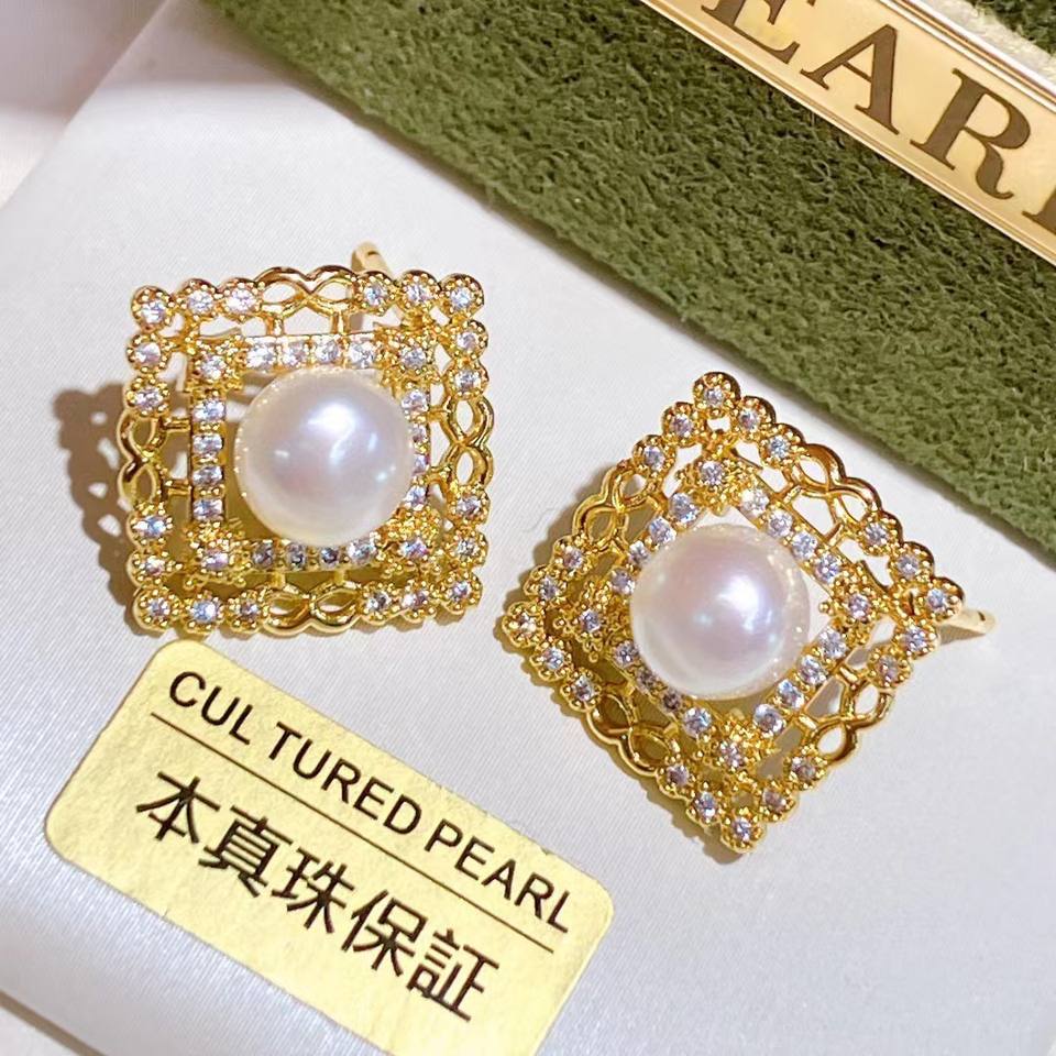Vintage Style Freshwater Pearl Earrings 14K Gold-Plated Pure Silver Lace Jewelry with Color Preservation