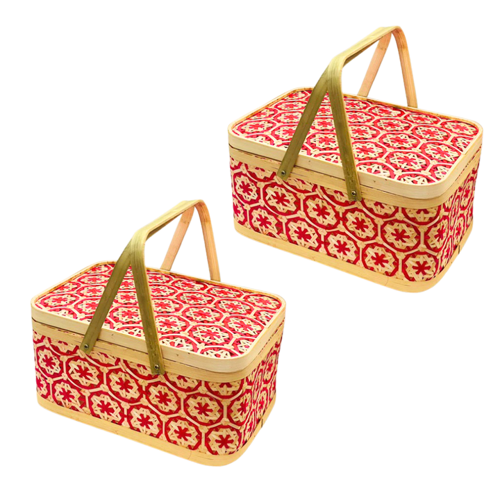 Paniers de rangement rectangulaires en bambou tissés à la main de style vintage avec motifs floraux pour le rangement, les cadeaux et la décoration