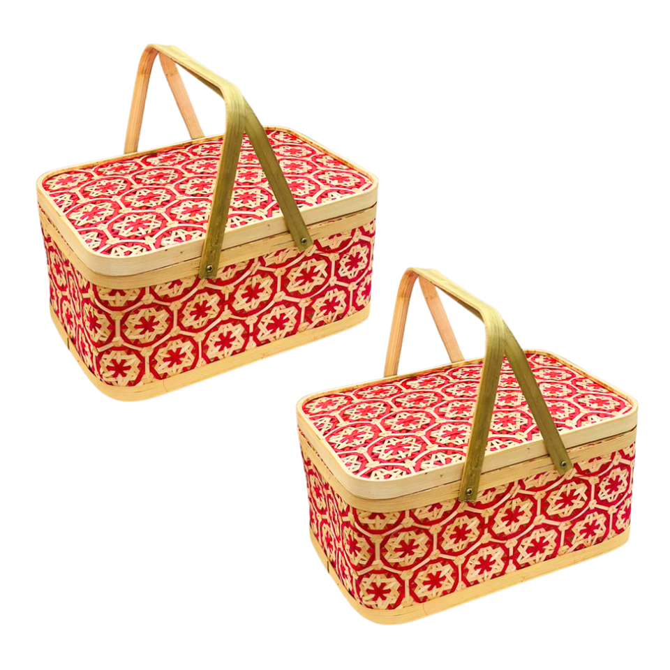 Paniers de rangement rectangulaires en bambou tissés à la main de style vintage avec motifs floraux pour le rangement et la présentation, fabriqués au Vietnam