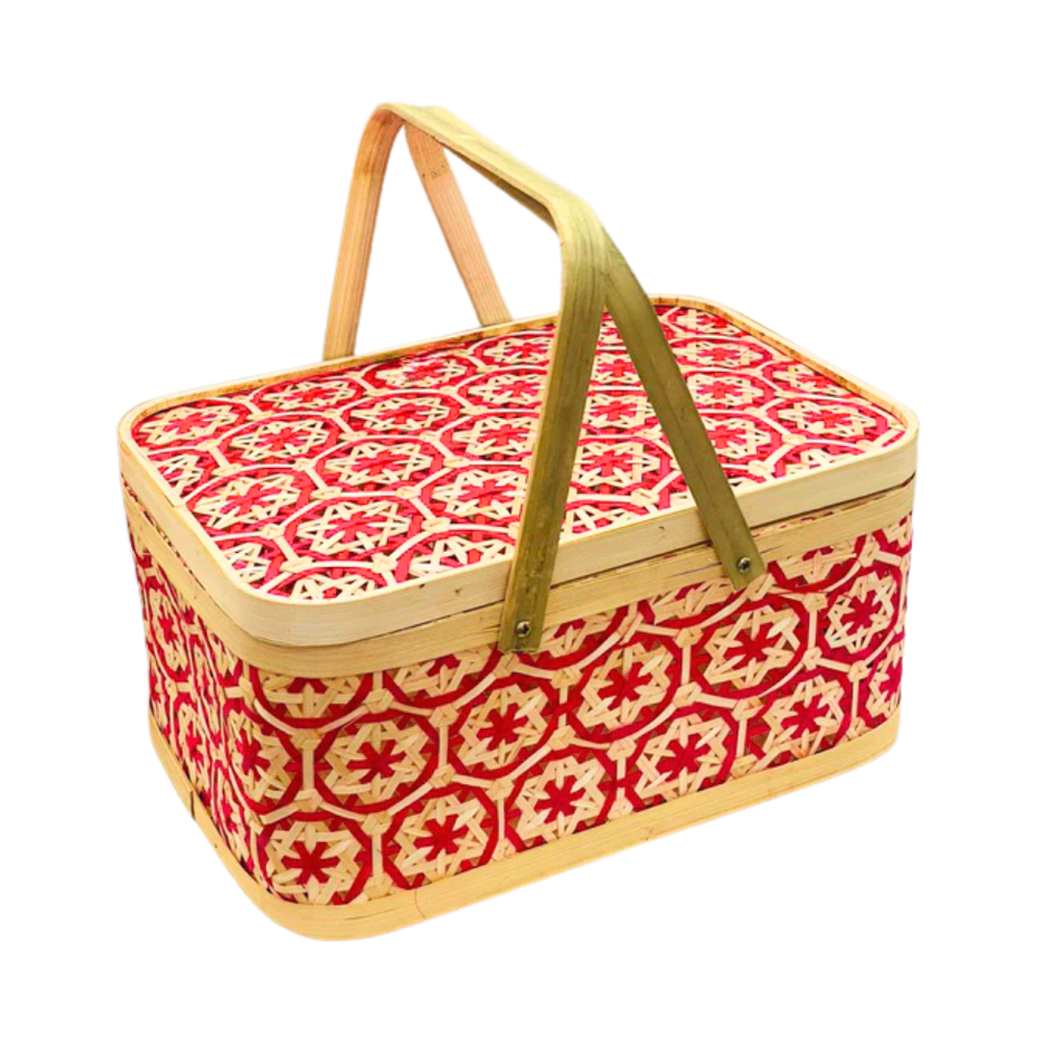 Paniers de rangement rectangulaires en bambou tissés à la main de style vintage avec motifs floraux pour cadeaux, rangement et organisation de la maison