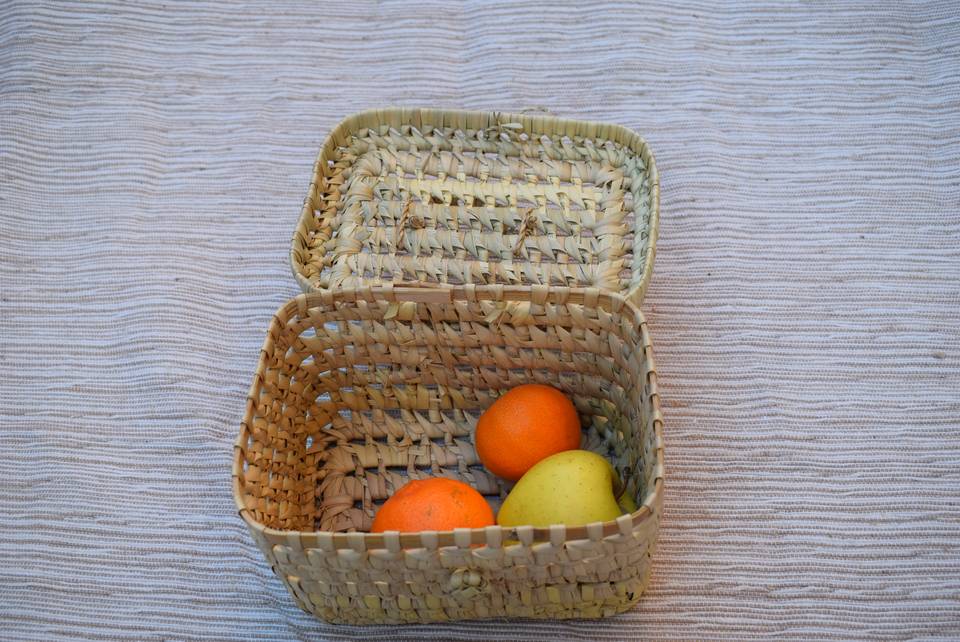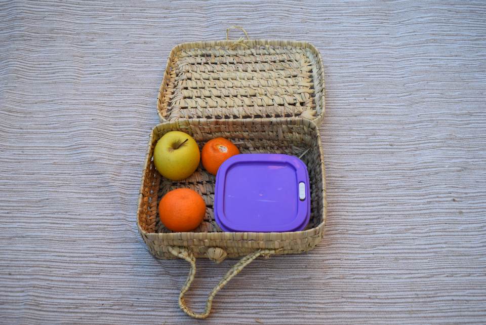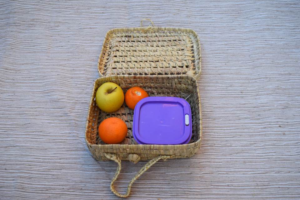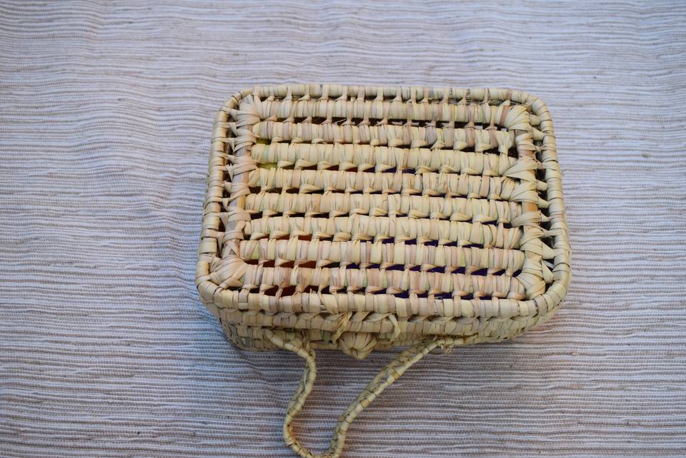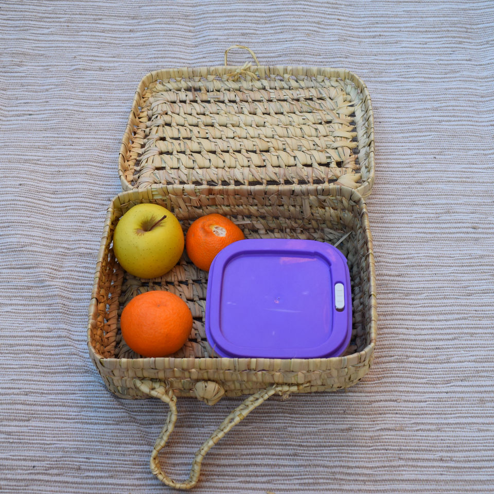 Boîte à lunch en osier de style vintage avec motif carré, design inspiré d'un sac à main, fermeture à deux poignées, couvercle, Moroccansoul, unisexe