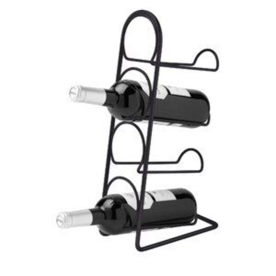 Porte-bouteilles en fil d'acier thermolaqué style vintage, support de table en métal pour 6 bouteilles avec poignée en bois, organisateur de rangement