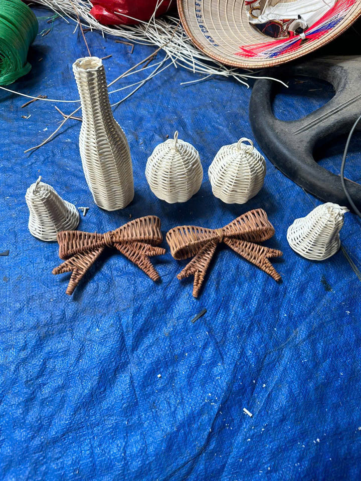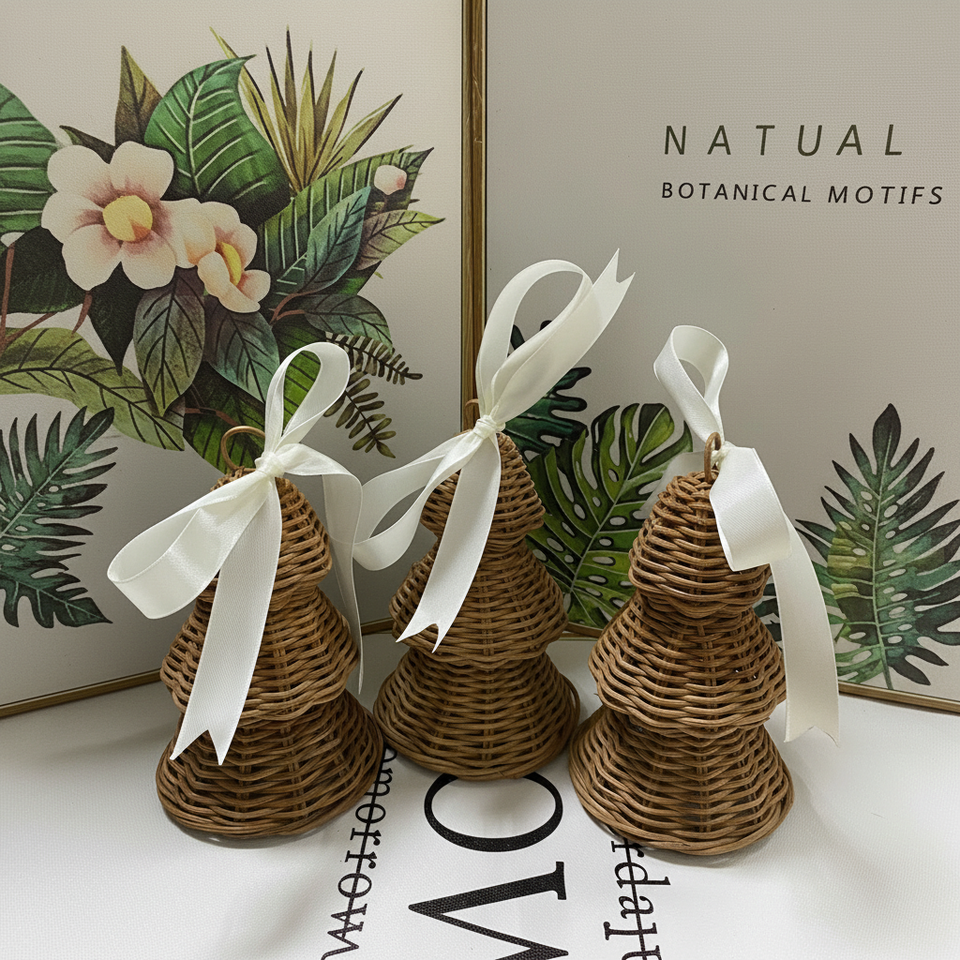 Décorations de Noël en rotin de style vintage: Mini arbre créatif en rotin avec cloches en rotin fait à la main Décorations de vacances d'hiver de qualité supérieure.