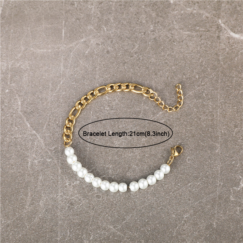 Bracelets unisexe simples en acier inoxydable de style vintage plaqué or perle artificielle diamant pierre principale motif religieux mode