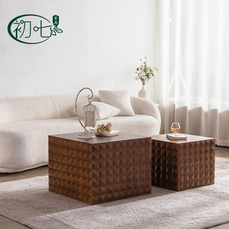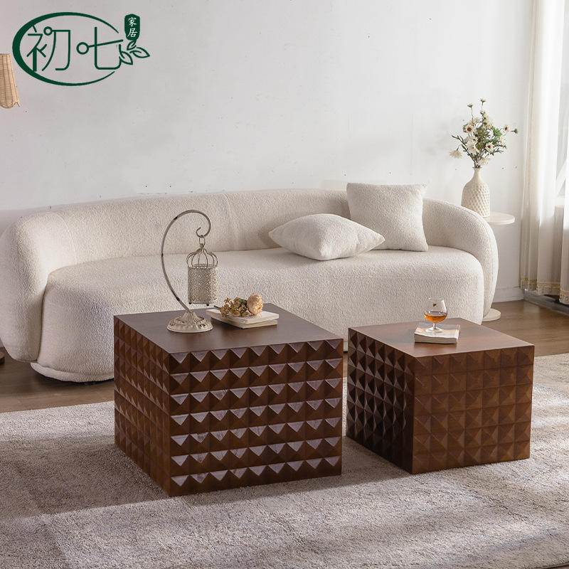 Table basse carrée en bois massif de style vintage 3871, peinture décorative pour salon