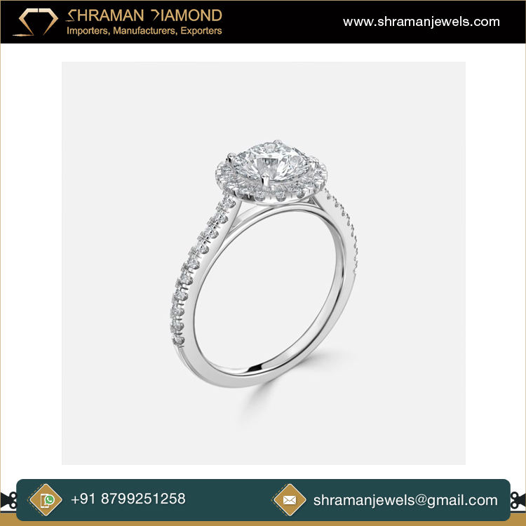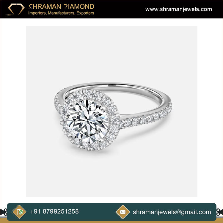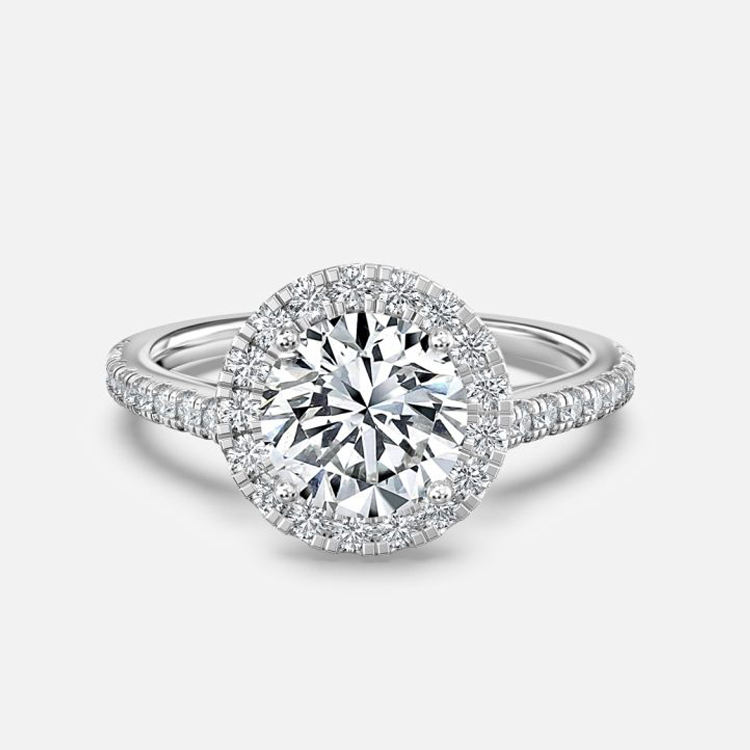 Forme / Modèle:Bague ronde en diamant à sertissage halo étincelant