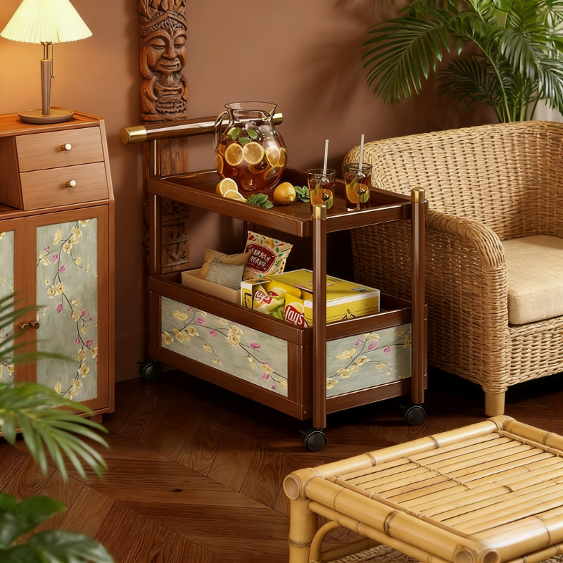 Table basse en bois massif de style vintage, couleur noyer, avec rangement, pour salon, usage domestique
