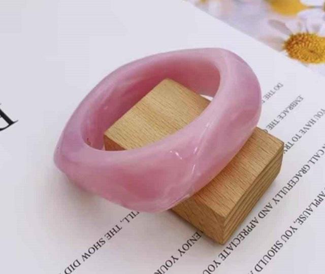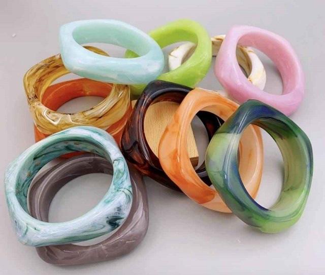 Vintage Thick Wide Resin Acrylic Square Big Bracelet Women's Fashion Irregular Geometric Bangle Jewelry Eco-Friendly Angel Model