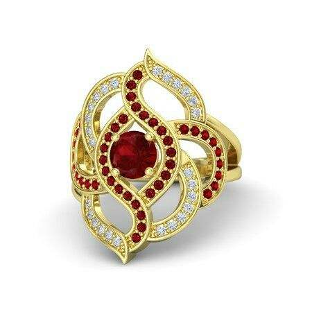 Nom du produit:Bague alliance en or jaune 14 carats avec rubis et diamants taille ronde traditionnelle