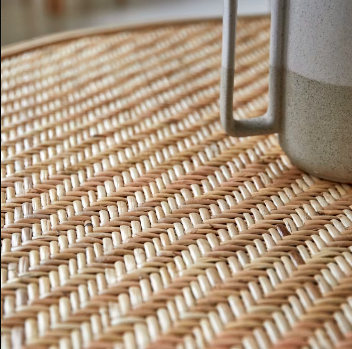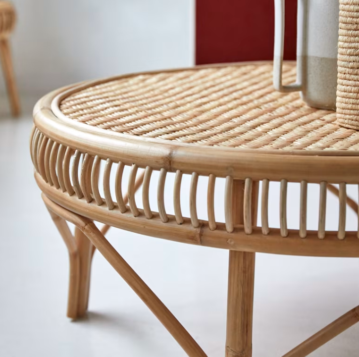 Table basse ronde en rotin tressé