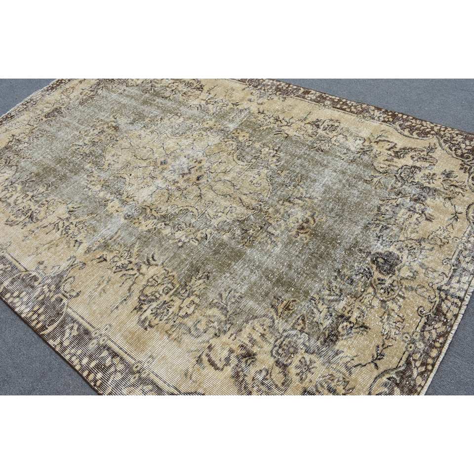 Tapis turc vintage 6x9ft classique Beige marron Patchwork Design grand rectangle en laine avec support en latex pour chambre d'ado