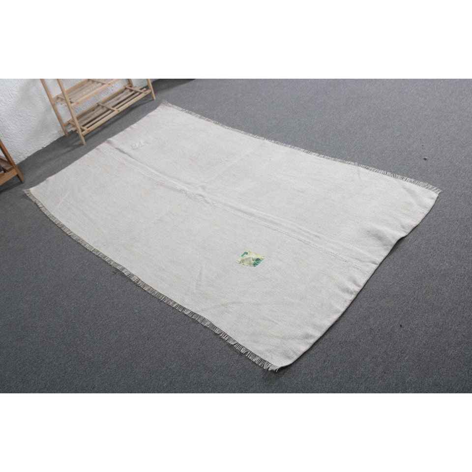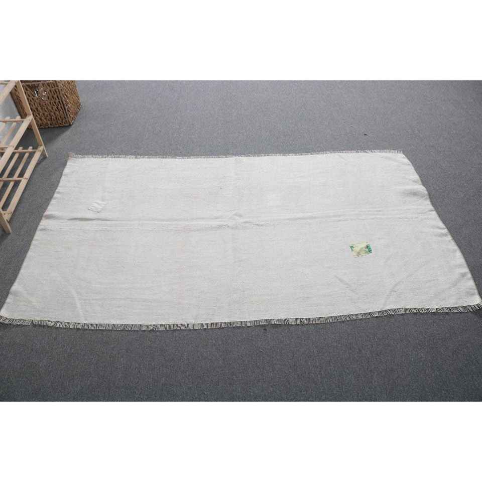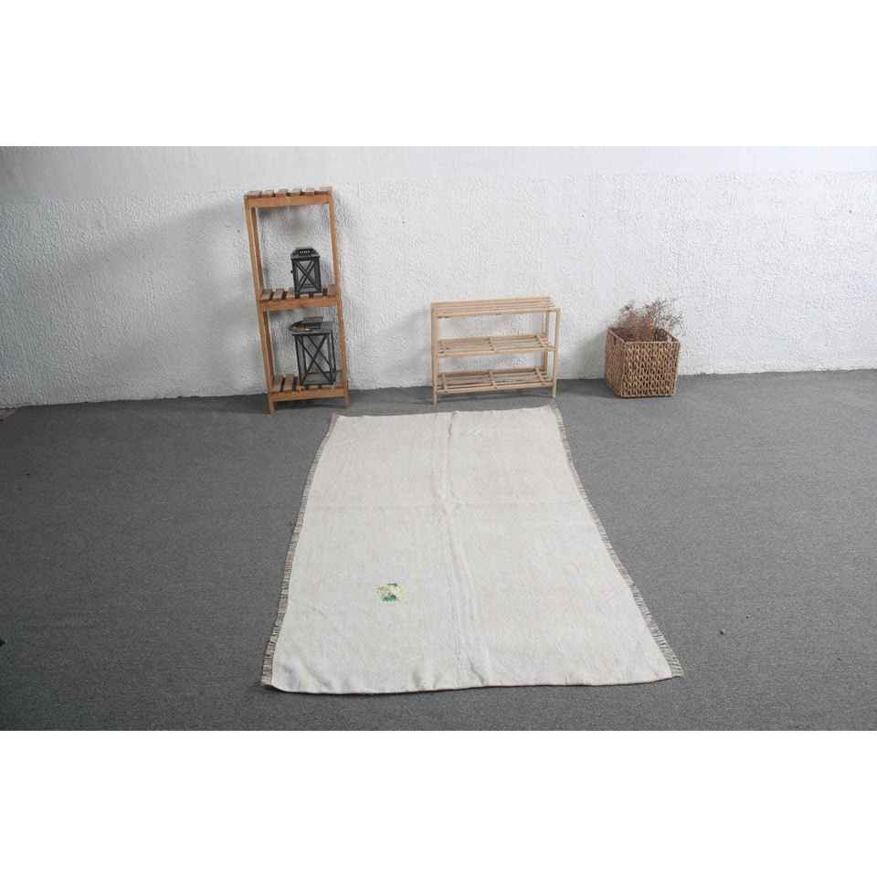 Tapis turc vintage 6,4x3,5 pieds, tapis à bordure blanche en laine