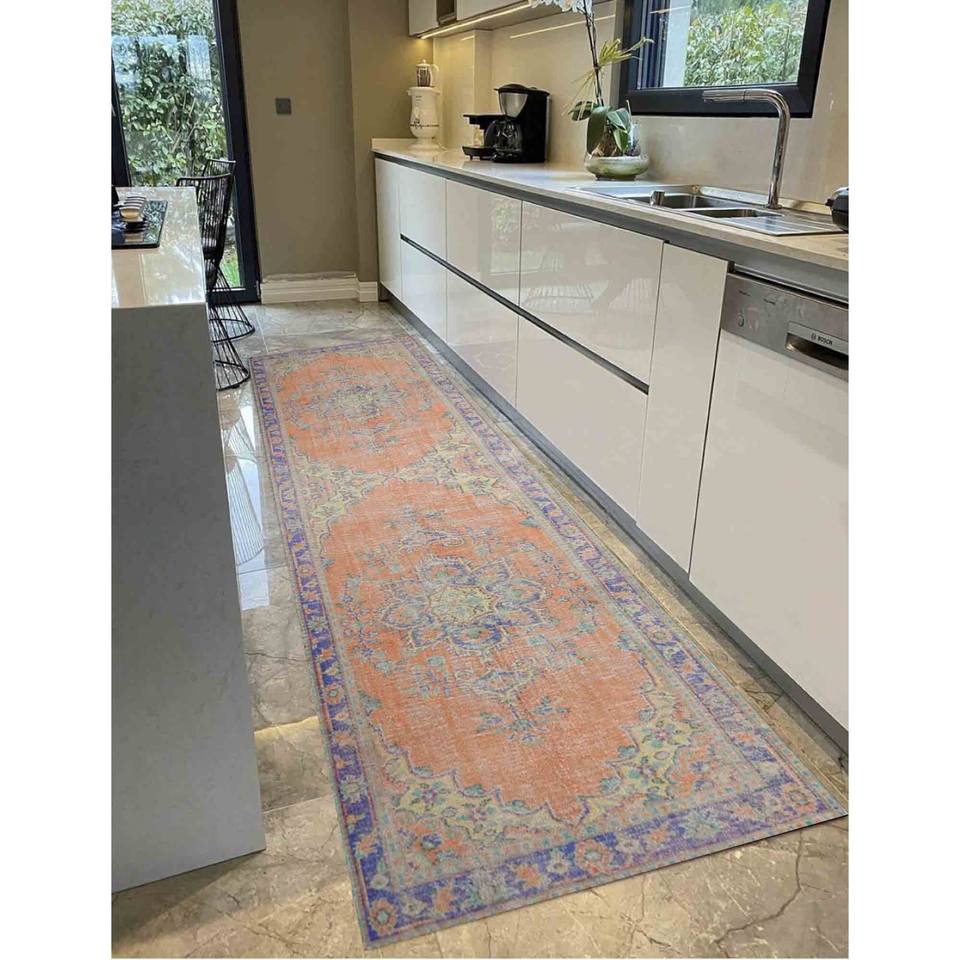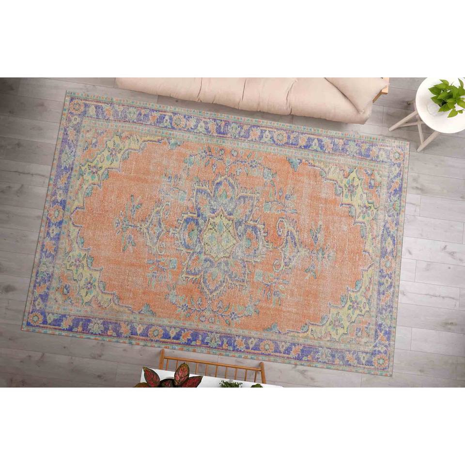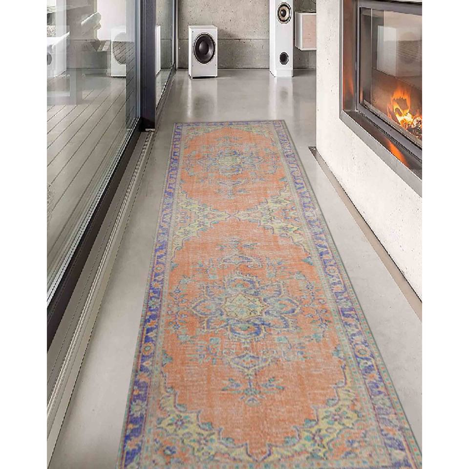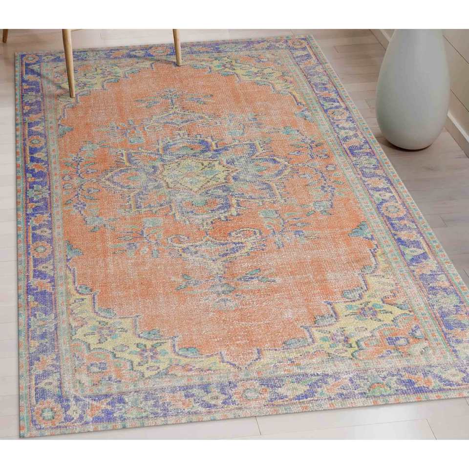 Tapis chenille turc vintage : Tapis imprimé pour décoration d'ambiance champêtre, tapis fin non tissé