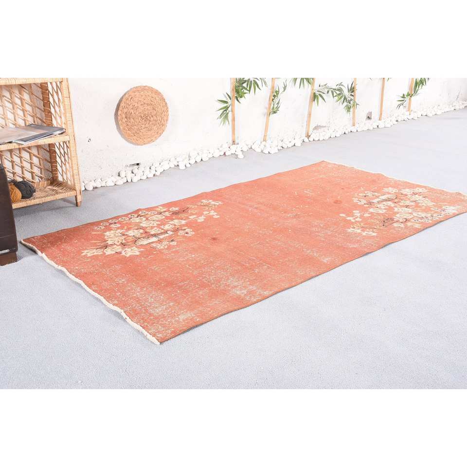 Tapis en laine classique turque Vintage 3.8x6.9 pieds Orange Beige motif floral technique de tissage plat pour adolescent salon latex soutenu
