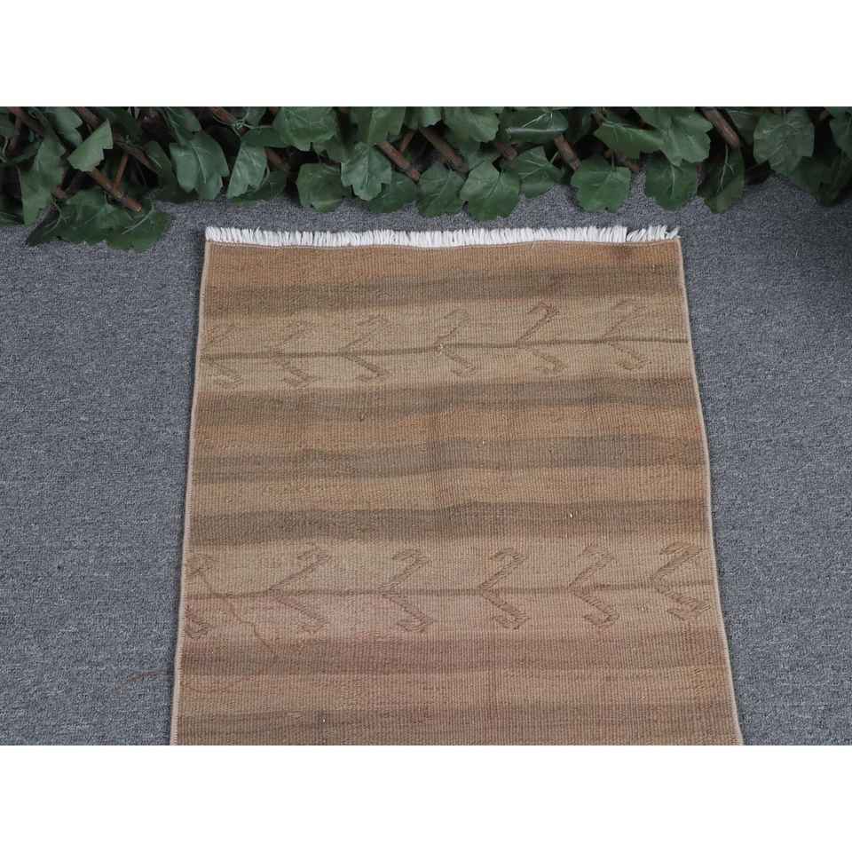 Tapis Kilim turc vintage 1,5x4,1 pi (47x126 cm), tapis en laine marron camouflage
