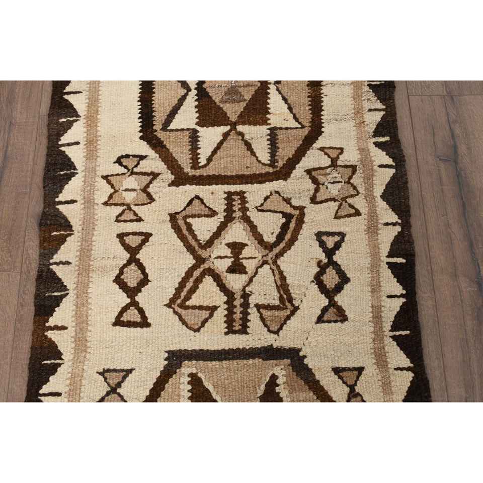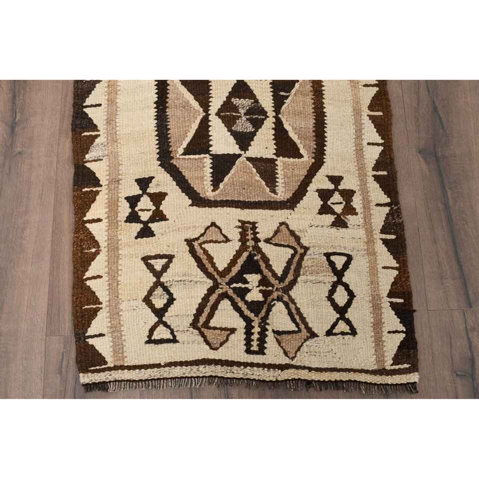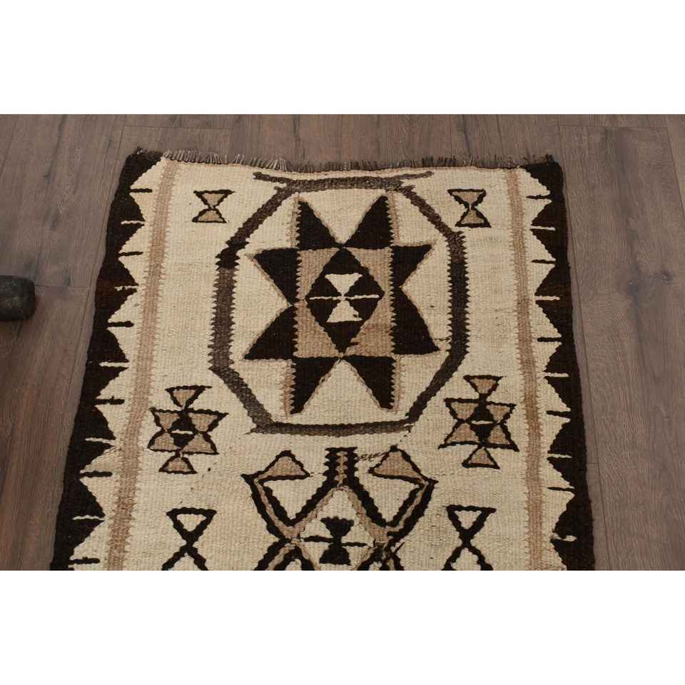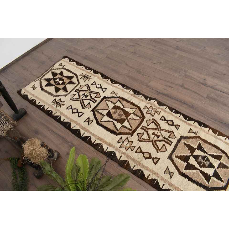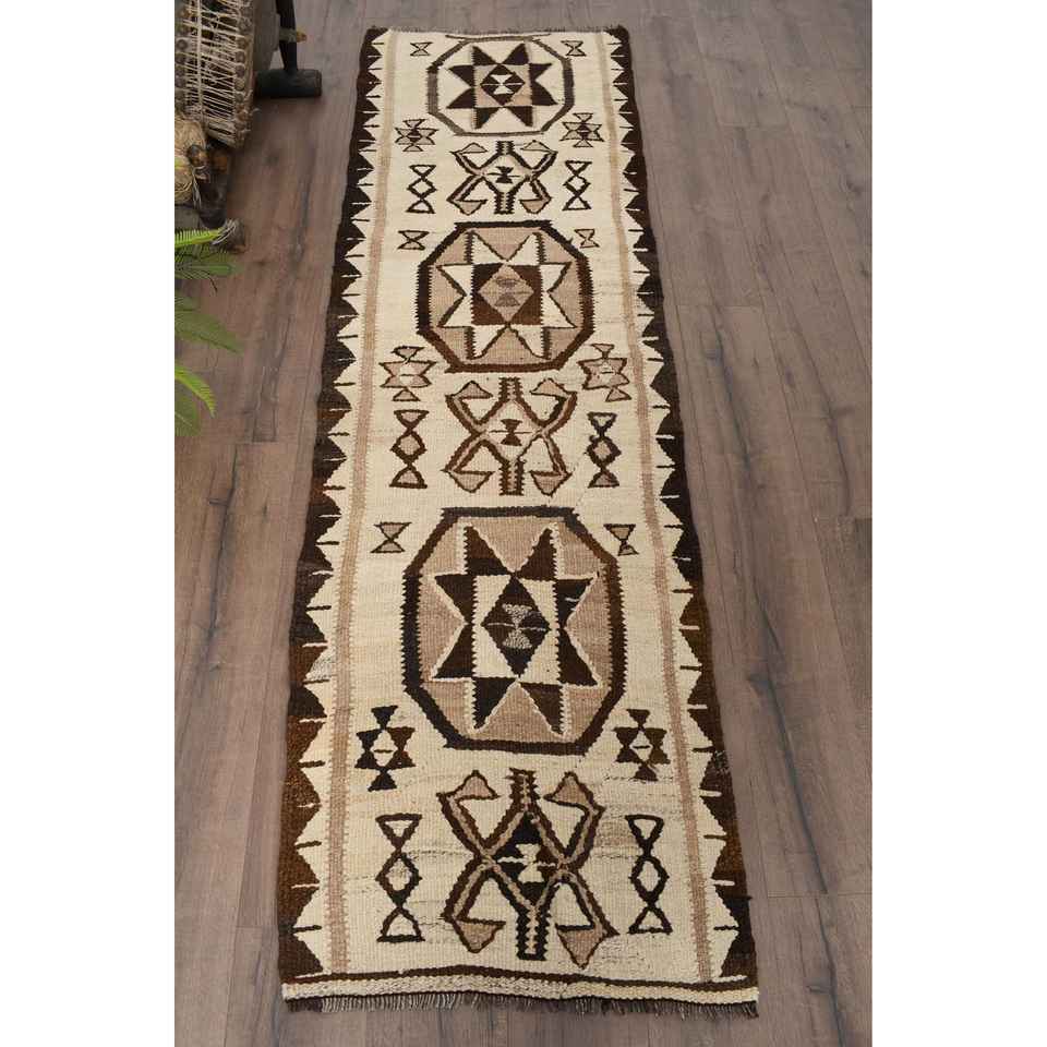 Tapis de couloir turc vintage Kilim 2,2x7,9 pieds, tapis à carreaux marron en laine