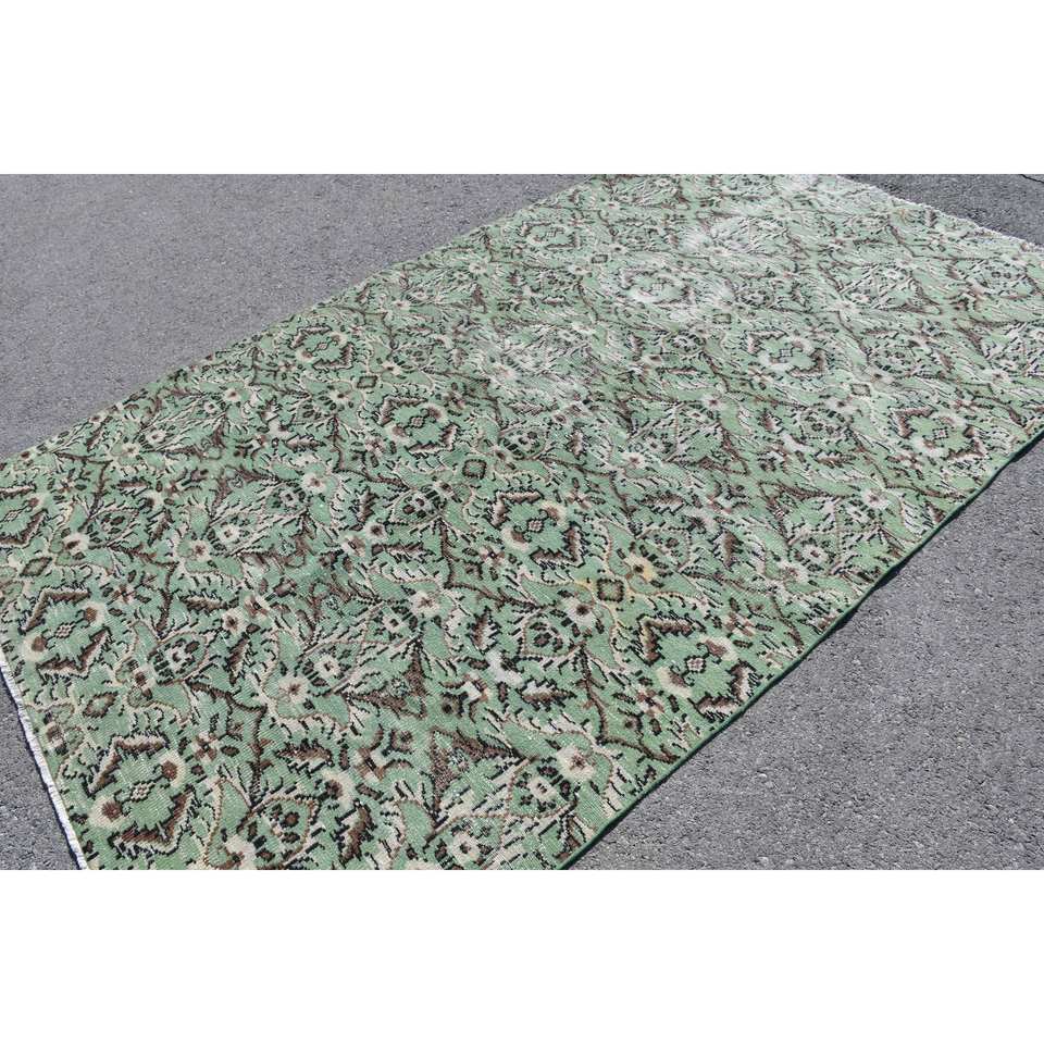 Tapis de Grande Surface Turc Vintage Classique Vert Marron 5.8X9.5 ft Patchwork Laine Latex pour Adolescents Tapis Rectangulaire Couloir Chambre