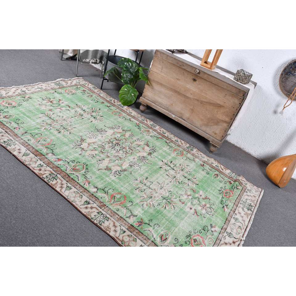 Tapis turc vintage classique vert beige 5x8 pieds fait à la main en laine et latex motif patchwork écologique à poils moyens