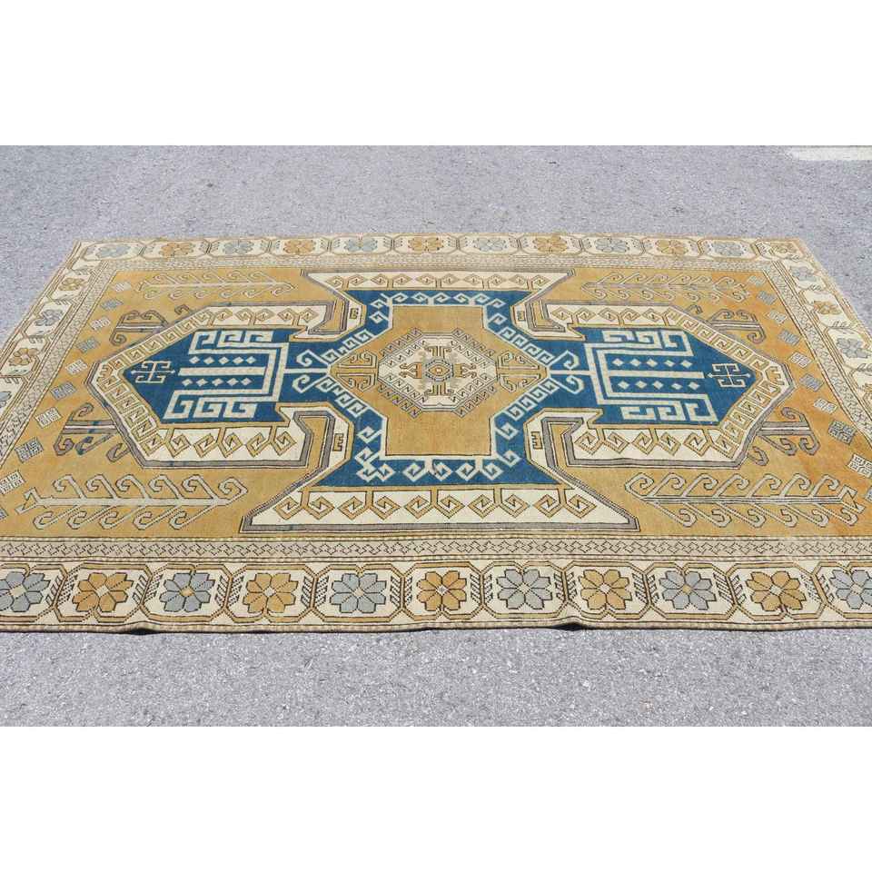 Grand tapis turc vintage 5,3x9,1 pieds, tapis en laine bleue