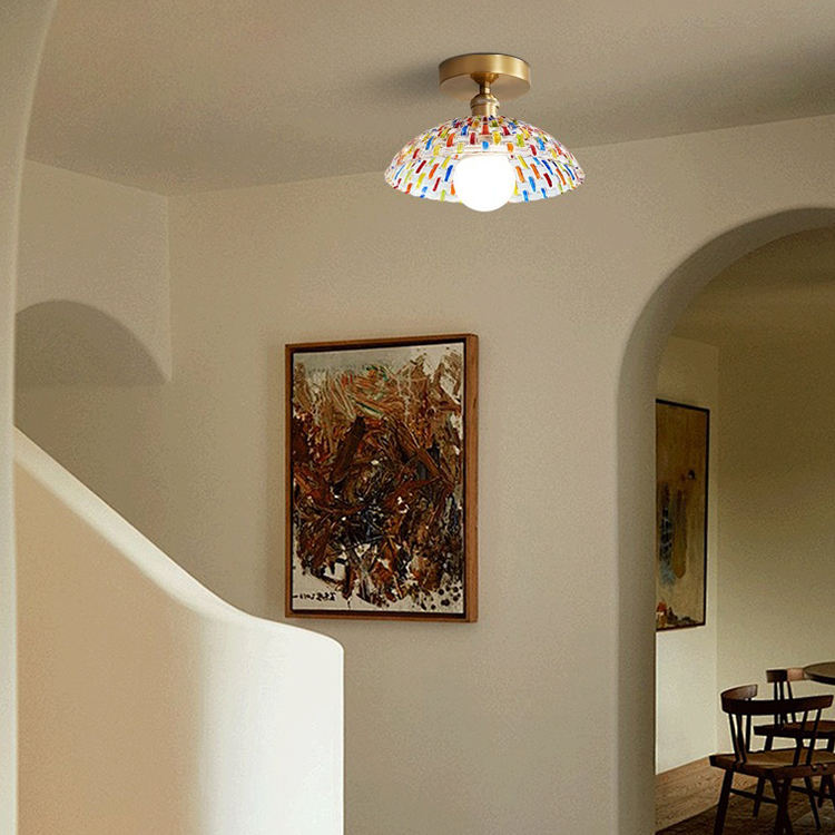Plafonnier vintage en verre mosaïque turc, doré, semi-encastré, LED 7W E27, couloir, entrée, chambre à coucher, décoration intérieure