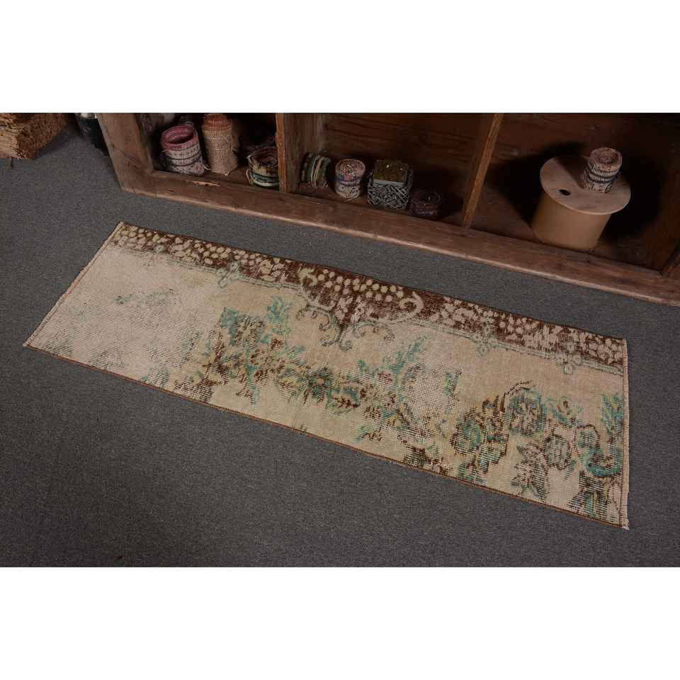 Tapis turc vintage 1.7x5 pieds Beige marron fait à la main en laine grande surface avec motif patchwork pour chambre d'ado couloir Latex soutenu