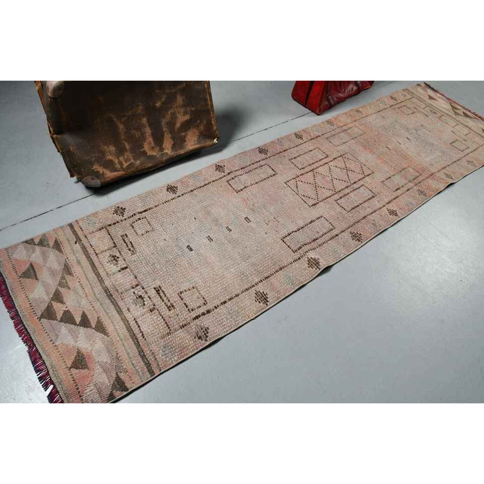 Tapis turc vintage, tapis Herki 2,5x9,5 pieds, tapis oriental brun rose