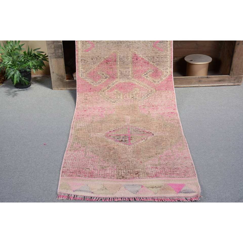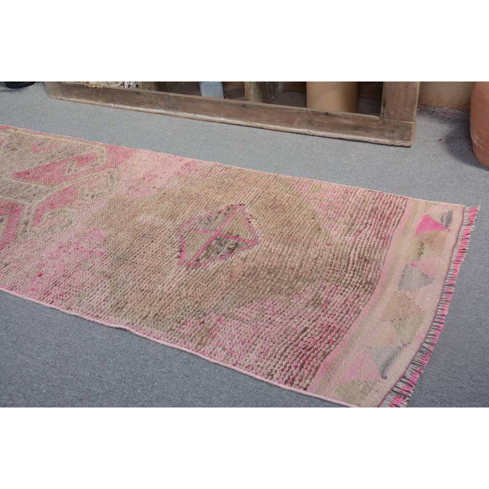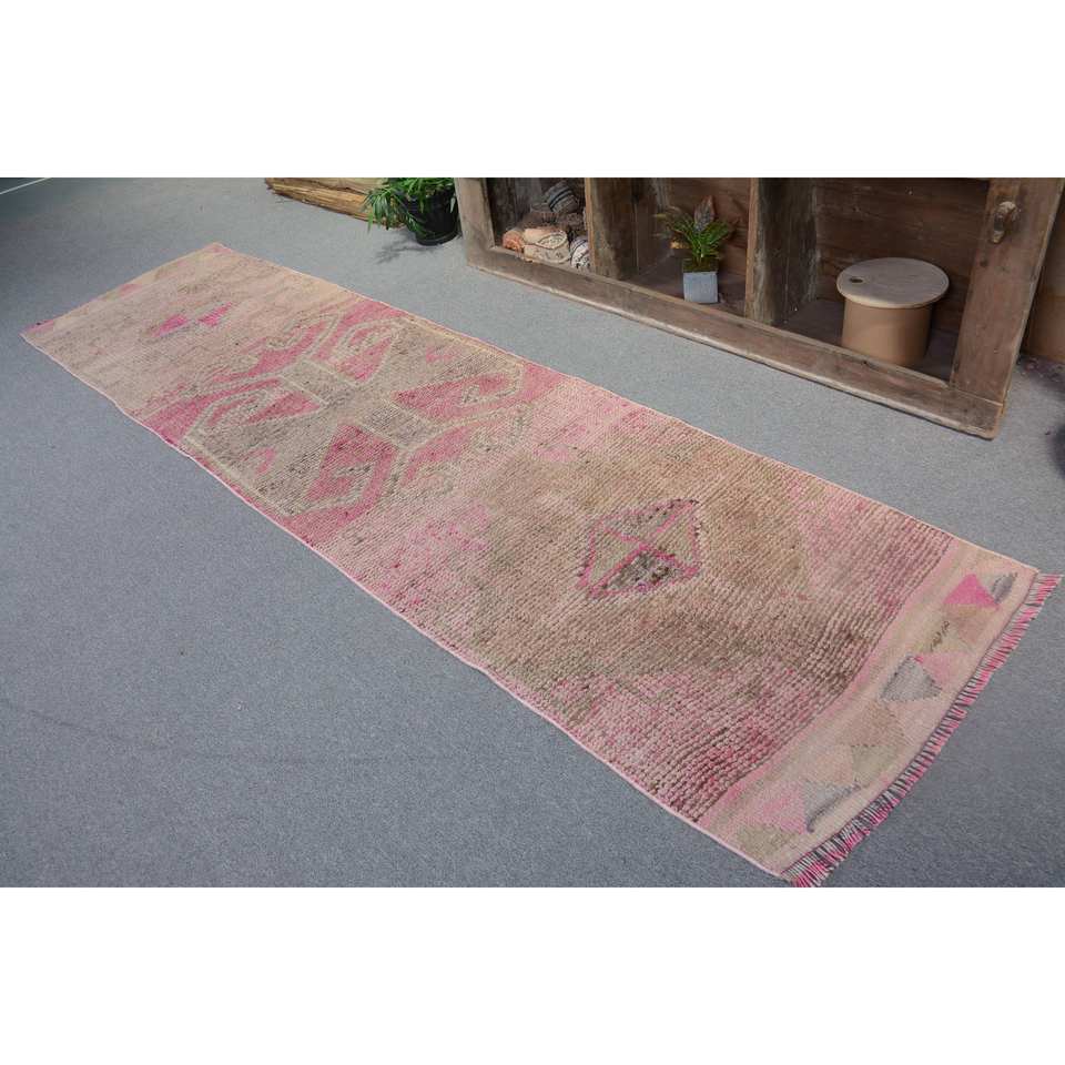 Tapis turc vintage 2.7 X 10.4ft grande surface motif abstrait laine Latex tapis de chambre rose Beige Patchwork Design pour couloir