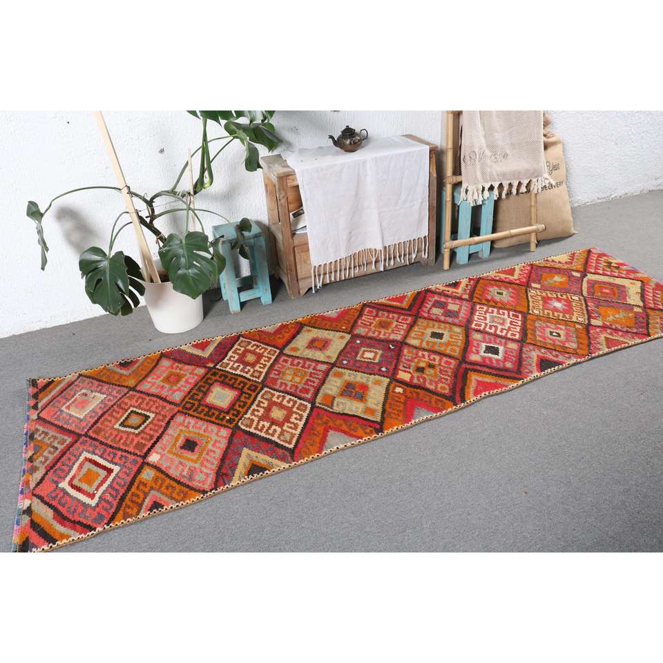 Tapis turc vintage, tapis Kilim 2,7x9,4 pieds, tapis persan rouge orangé