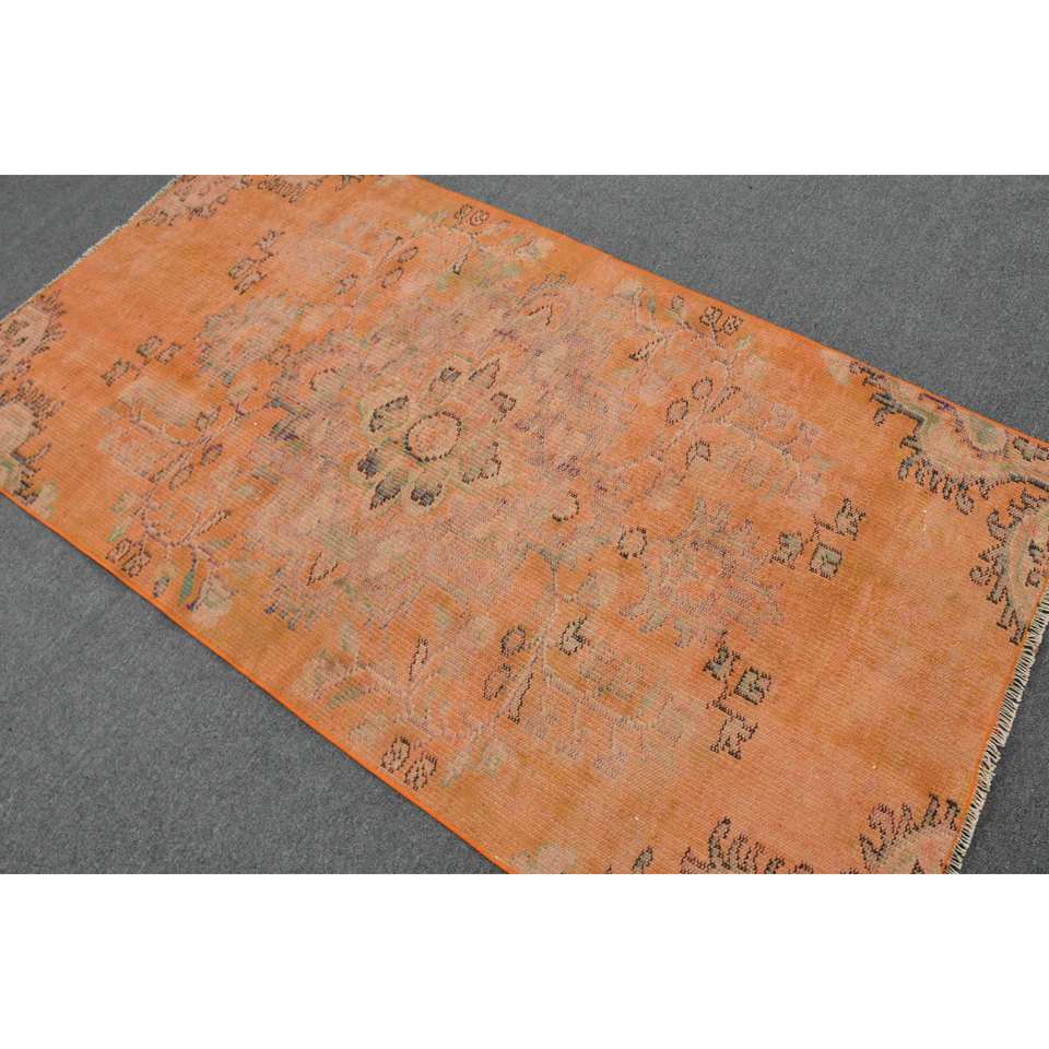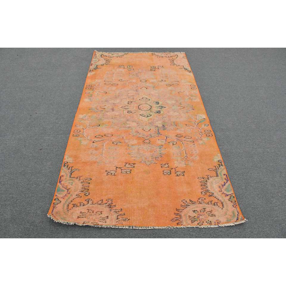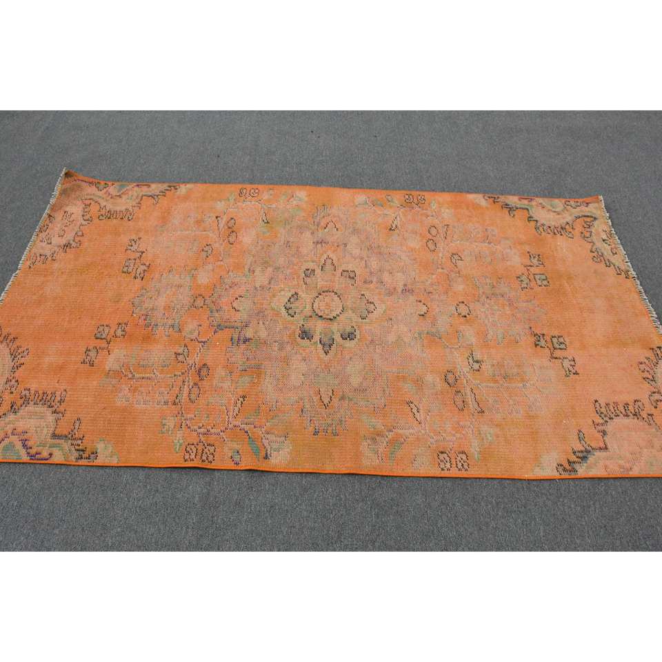 Tapis turc vintage 3,8 x 7 pieds, fait main, écologique, design patchwork orange, en laine, poils moyens, support en latex, rectangulaire