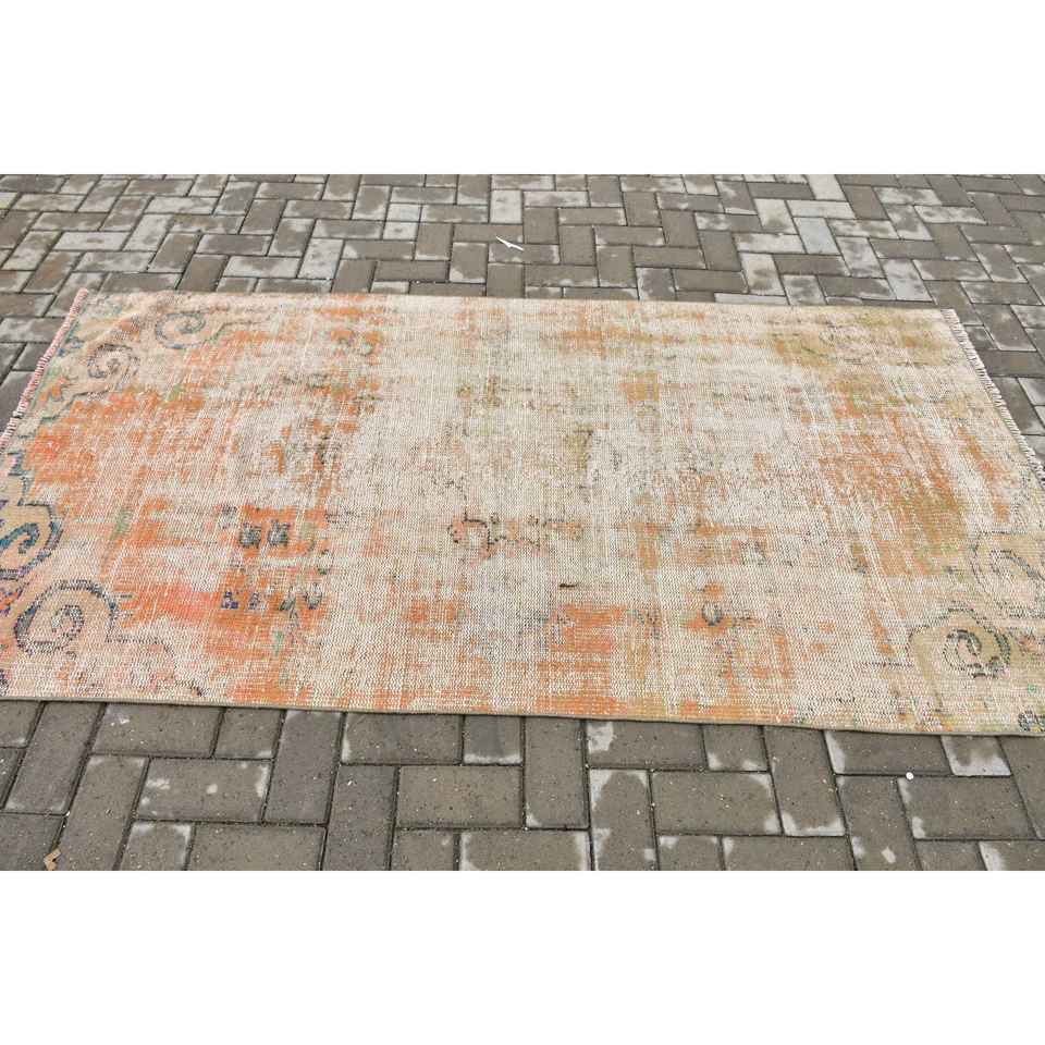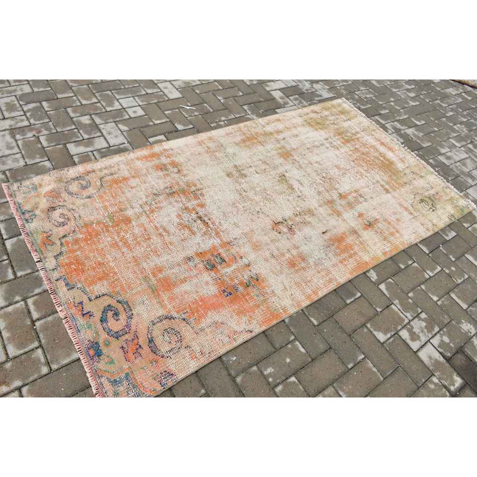 Tapis turc vintage, tapis d'appoint 3,8x7,3 pieds, tapis oriental orange et bleu