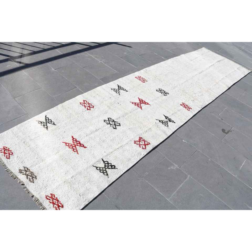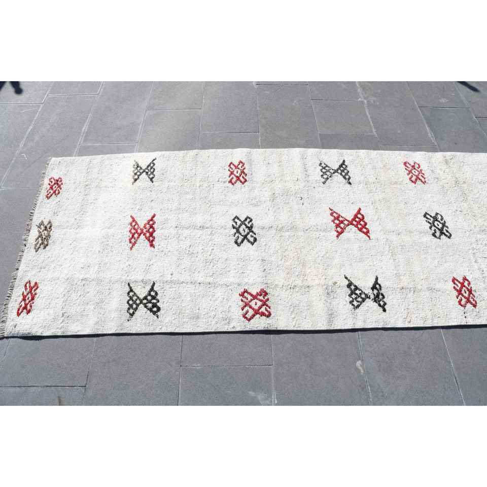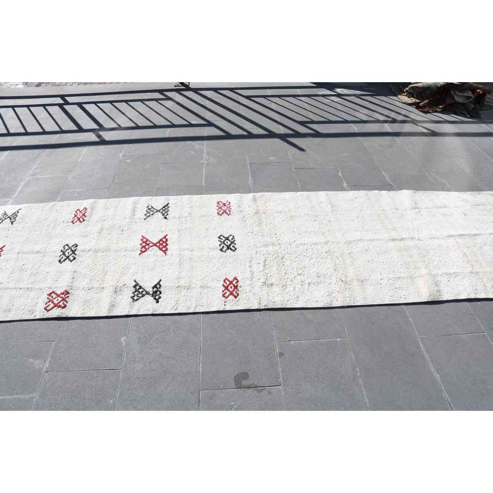 Tapis turc vintage, tapis de 3x11,8 pieds, tapis blanc abstrait
