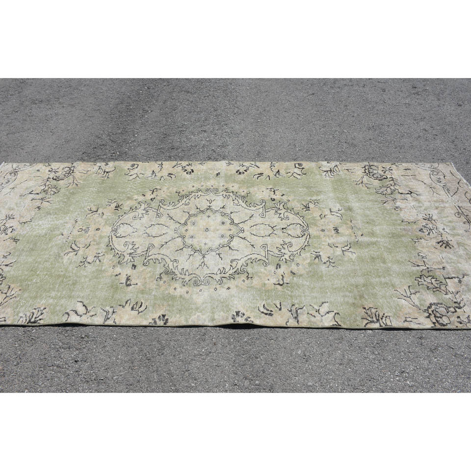 Tapis Turc Vintage 4.1 X 9.8ft Vert Beige Laine Plat Tissage Patchwork Design pour Salon Décor Couloir avec Support en Latex
