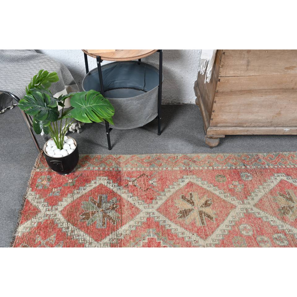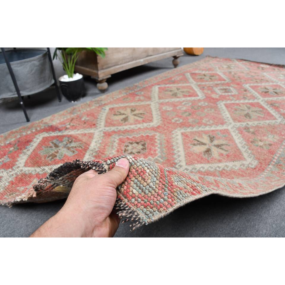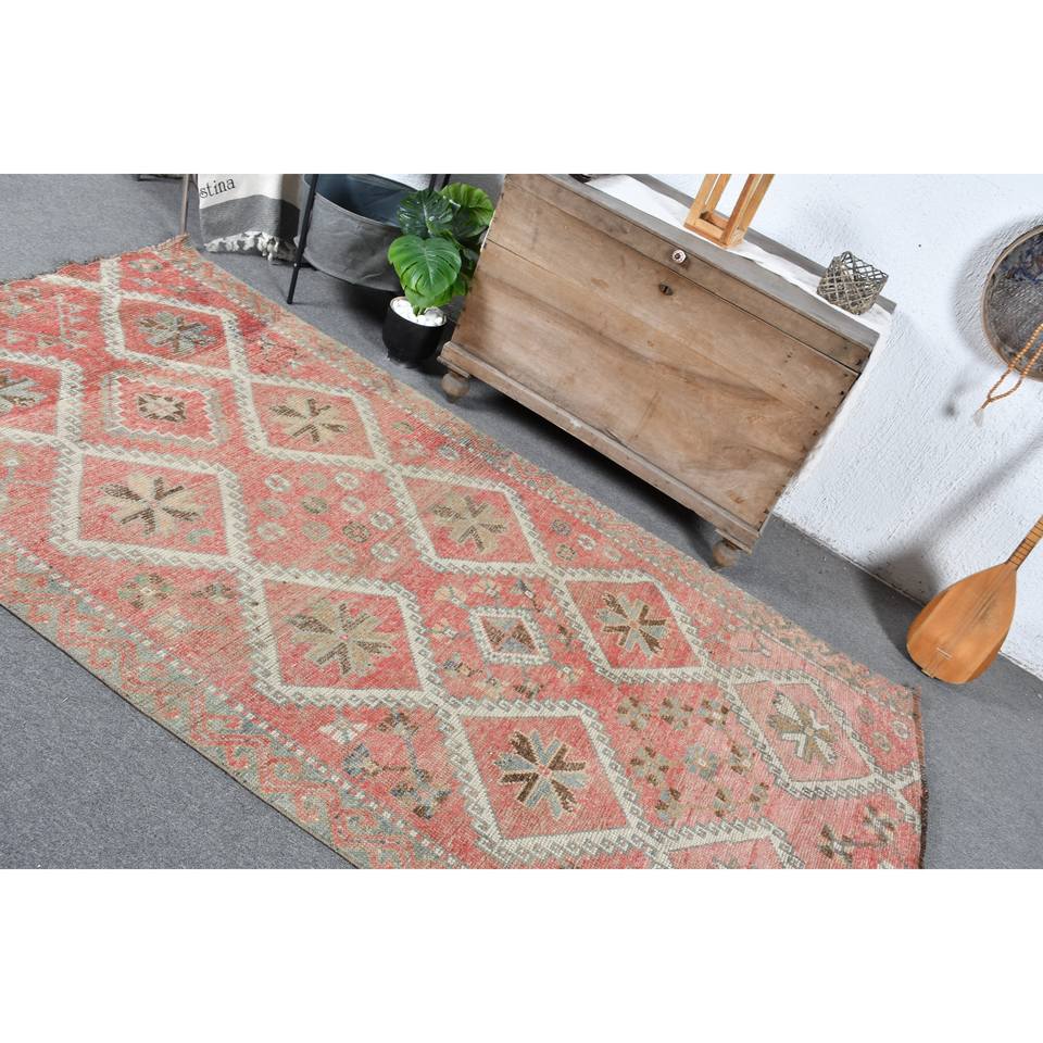 Tapis Turc Vintage 4.4 X 8.6ft Laine Beige Rouge Grande Surface avec Patchwork Design pour Couloir ou Chambre à coucher Latex Backed