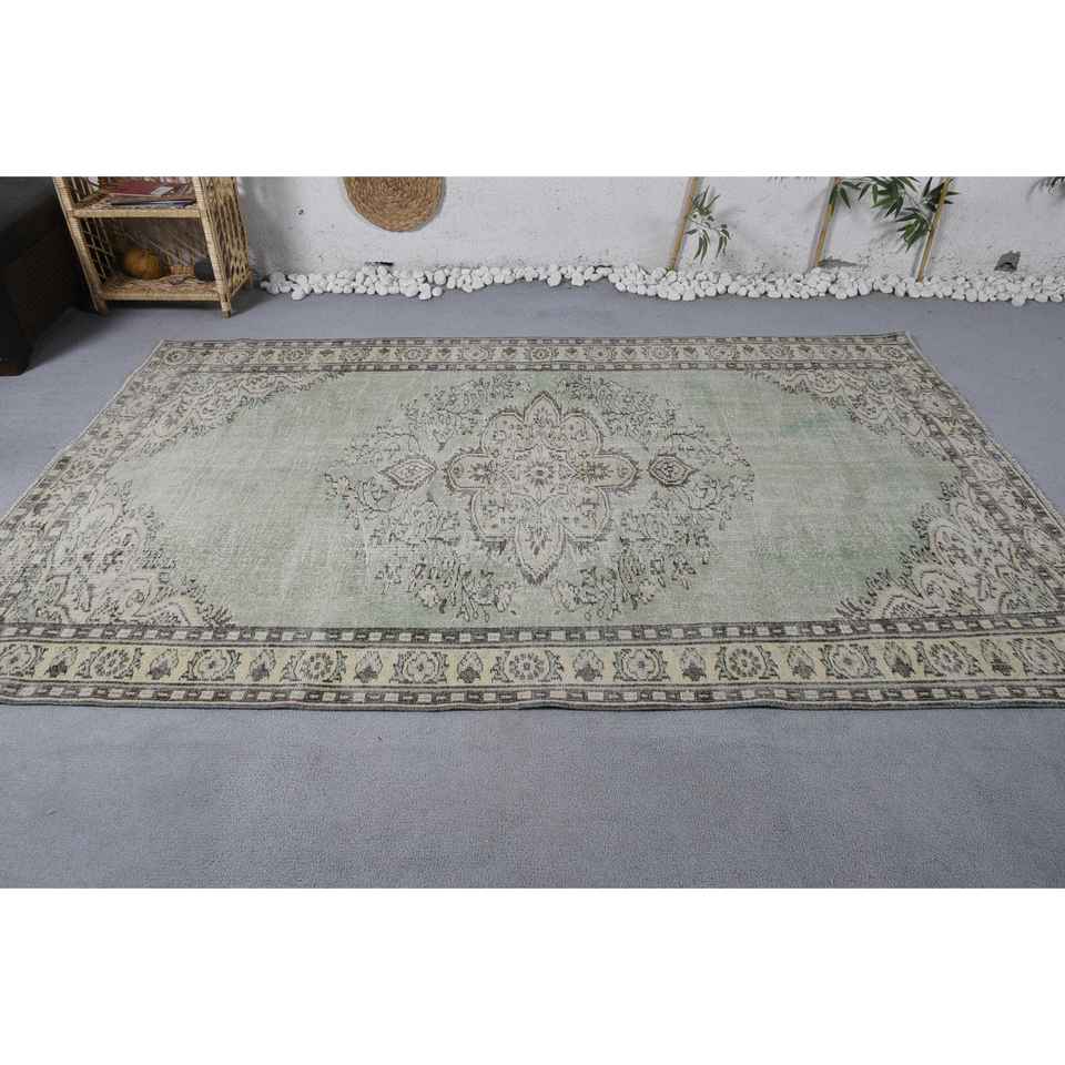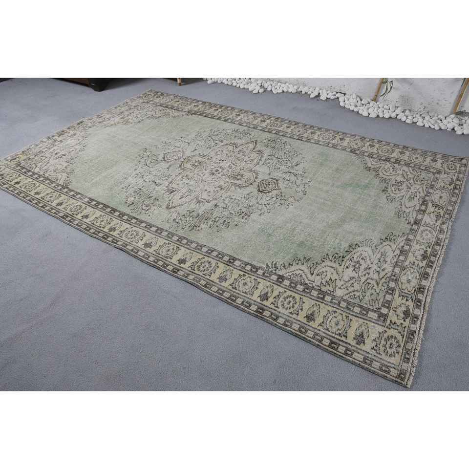 Tapis turc vintage 5.3 x 8.4ft vert beige laine Patchwork Design Latex pour la maison salon chevet rectangulaire couloir Tabriz