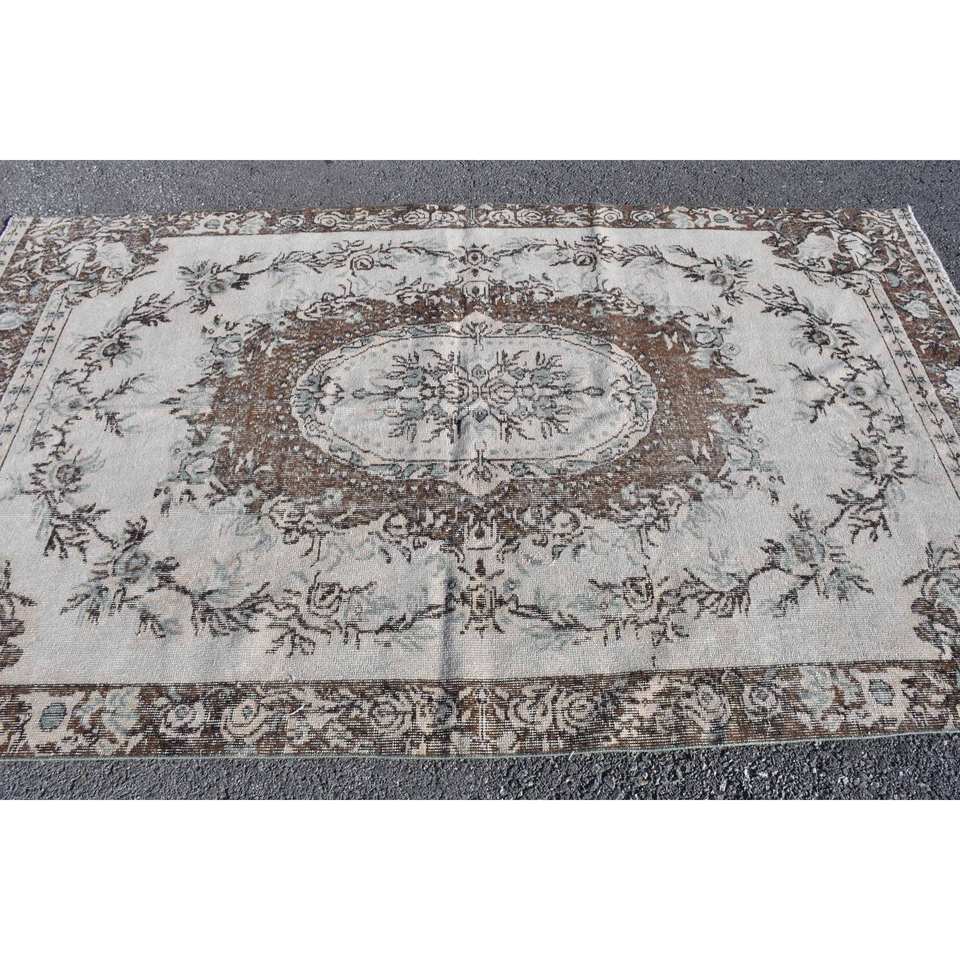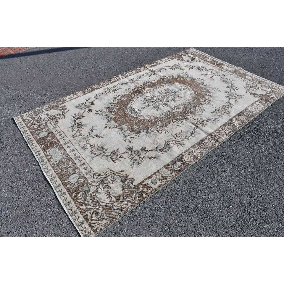 Tapis turc vintage 5.5x9,4 pieds marron beige tissage plat en laine avec motif patchwork pour les décorations de salon ou le couloir
