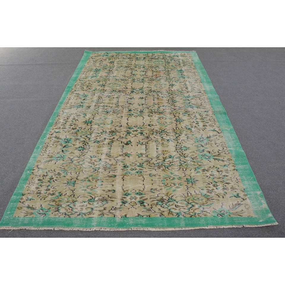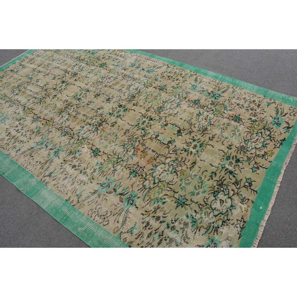 Tapis turc vintage 5.8x9.4ft vert Beige tissage plat laine Patchwork motif pour décor de salon ou couloir support en Latex