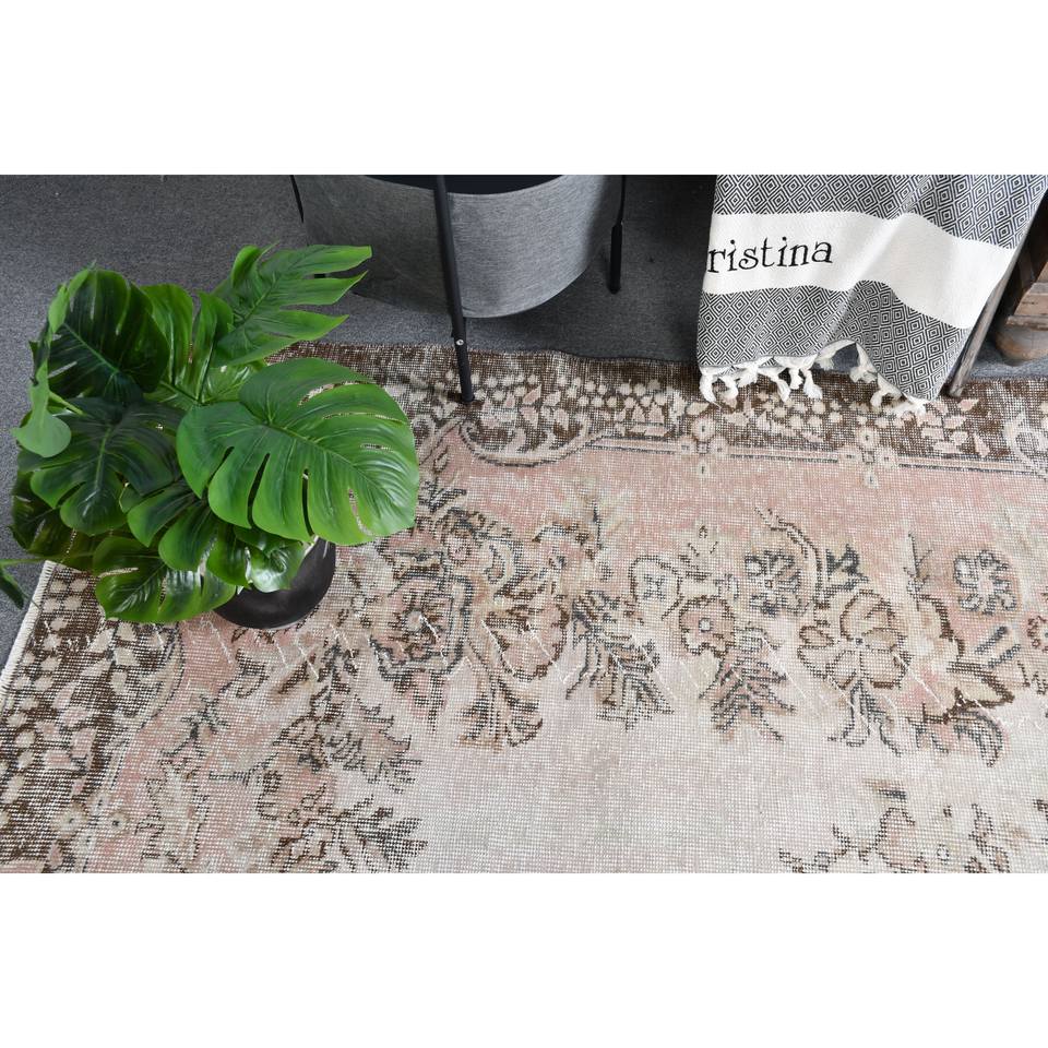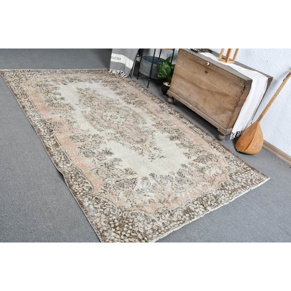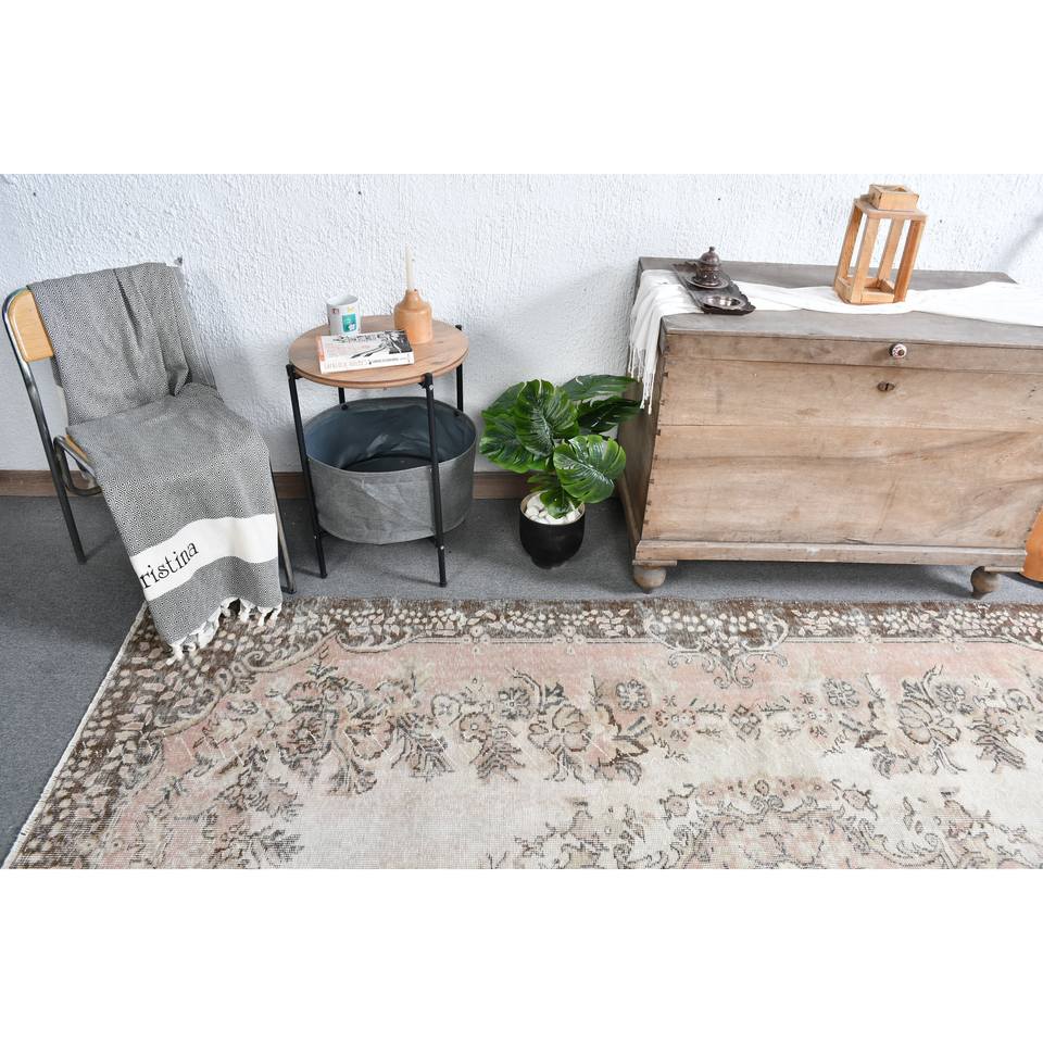 Tapis turc vintage 5,8x9,4 pieds beige marron écologique tissage plat traditionnel motif patchwork en laine décorations pour salle à manger