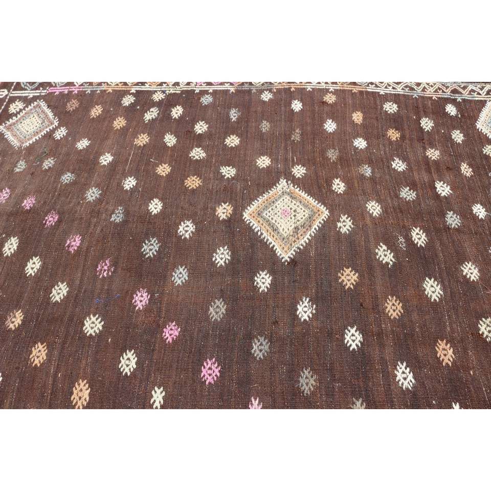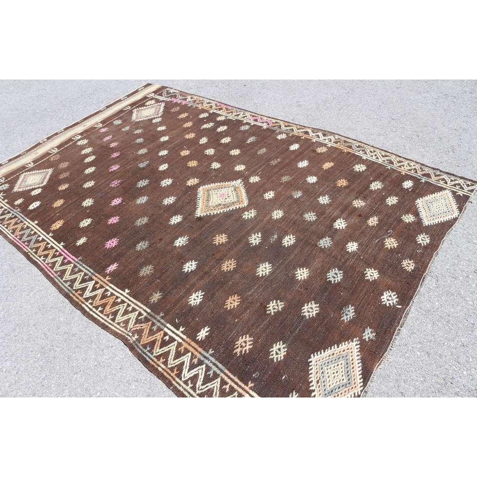 Tapis turc vintage, grand tapis de 5,9 x 8,7 pieds, tapis à imprimé animal brun