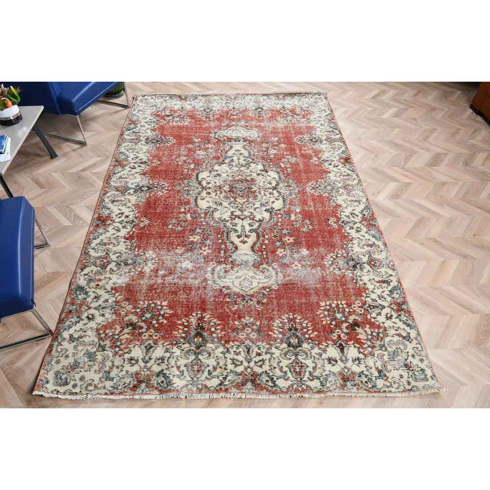 Tapis turc vintage 6,2x9,6 pieds, tapis oriental en laine rouge