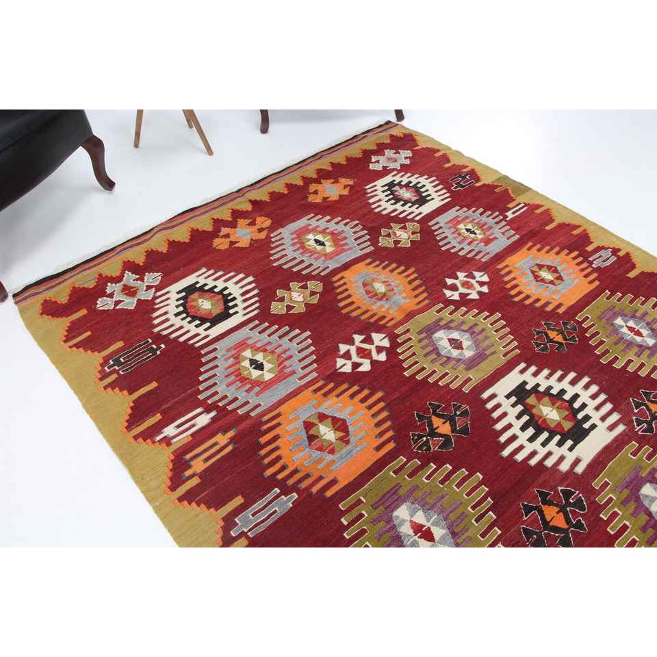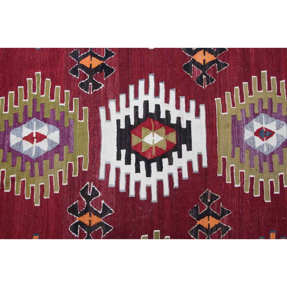 Tapis turc vintage 6,3x10,1 pieds, tapis en laine rouge camouflage