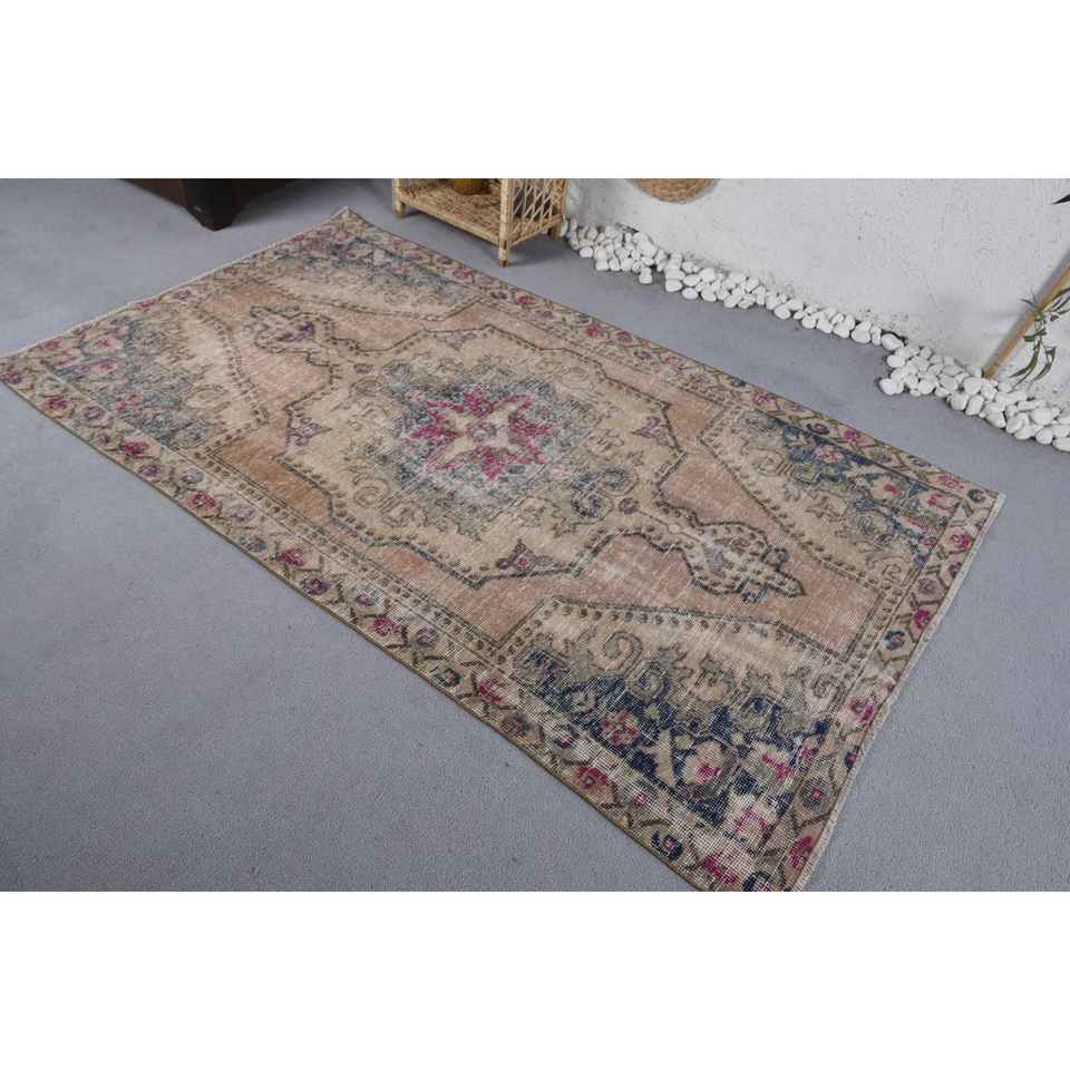 Tapis turc Vintage Beige 4.1 X 7.1ft fait à la main en peluche Pile hauteur laine fourrure Latex rectangulaire Patchwork pour chambre pour les adolescents