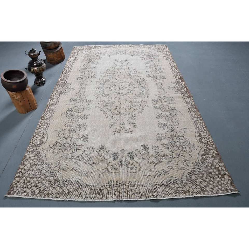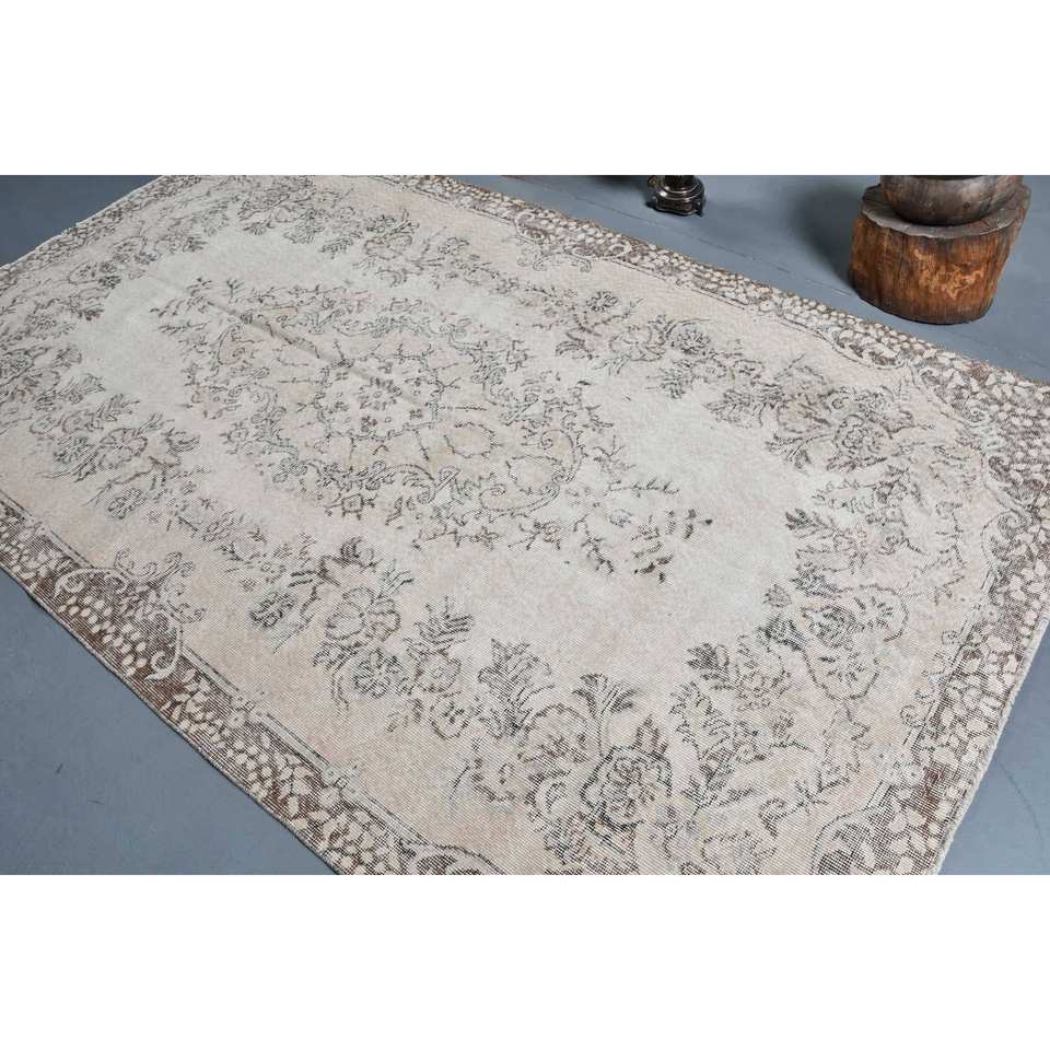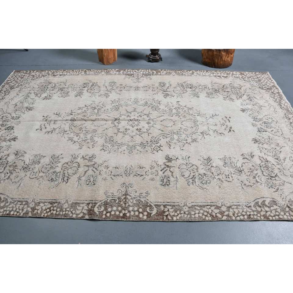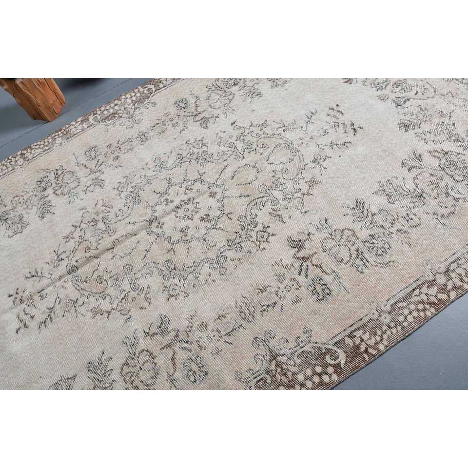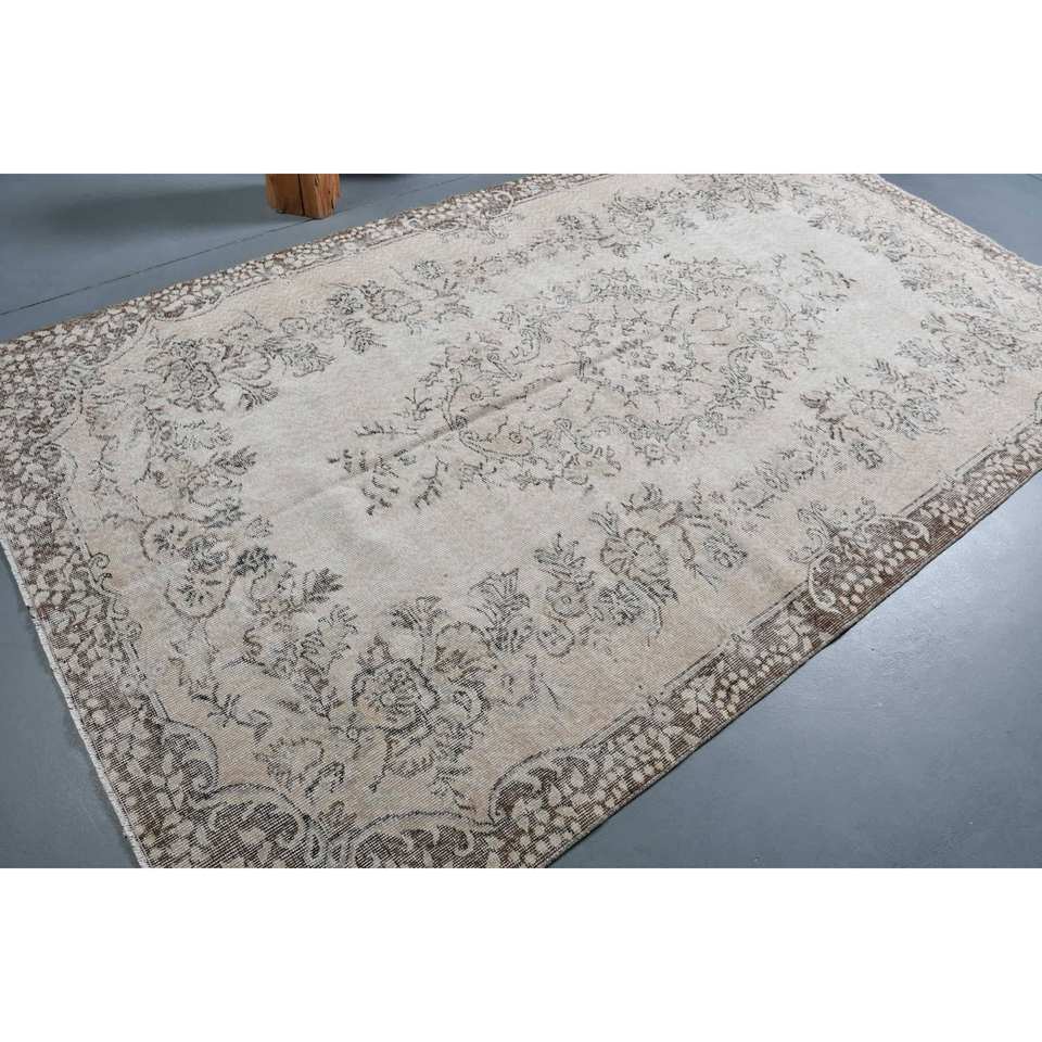 Tapis turc vintage Beige marron 5.5x9.4 pieds tissage plat en laine avec motif patchwork pour les décorations de salon utilisation couloir