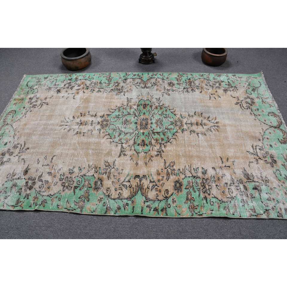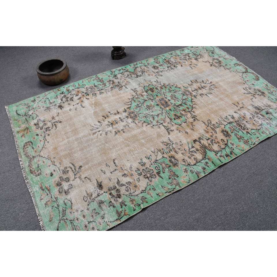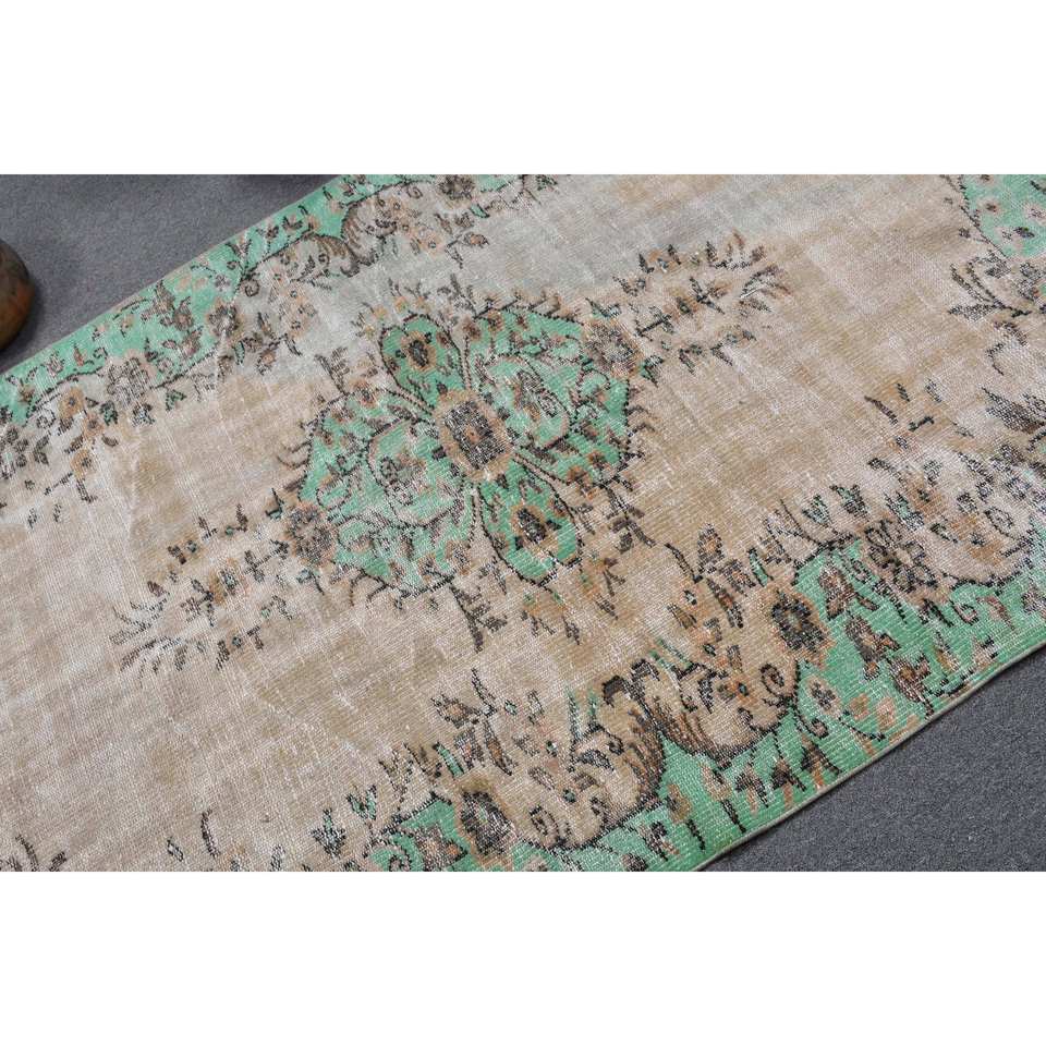 Tapis turc Vintage Beige Vert 4.5 X 7.4ft fait à la main en laine grande surface Patchwork Design rectangulaire couloir Latex pour la décoration de la chambre