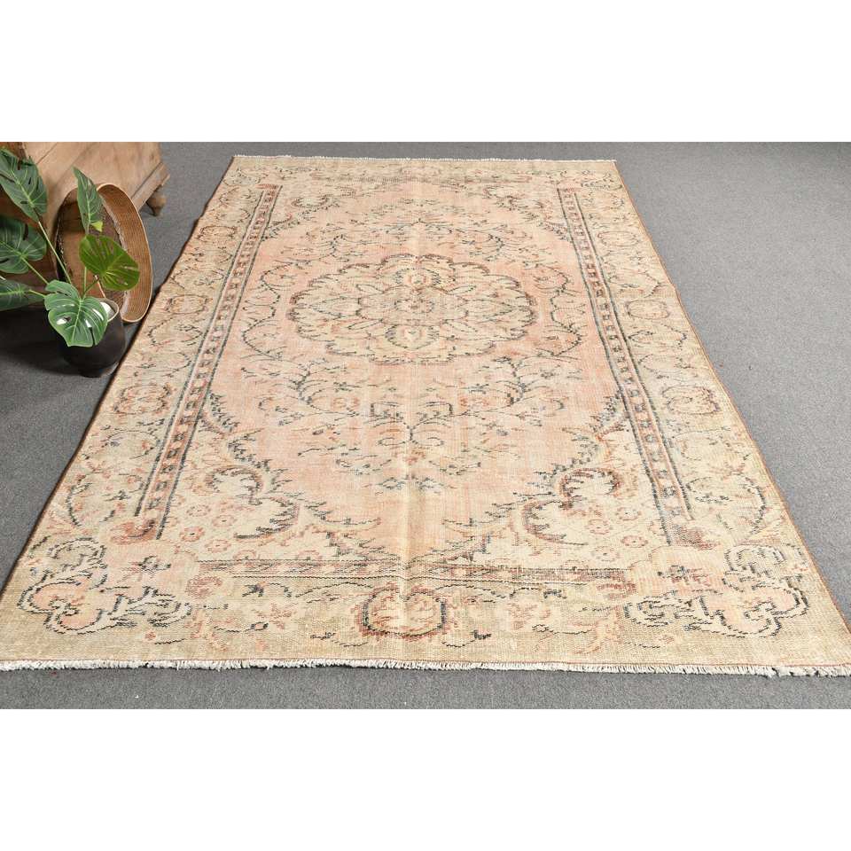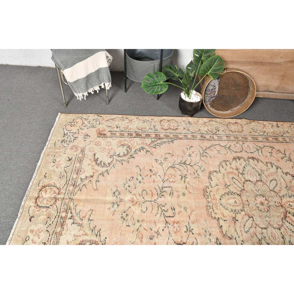 Tapis Turc Vintage Beige Vert 5.3 X 9ft Classique Grande Surface Laine Peluche Pile Hauteur Rectangulaire Couloir Motif Latex pour Chambres
