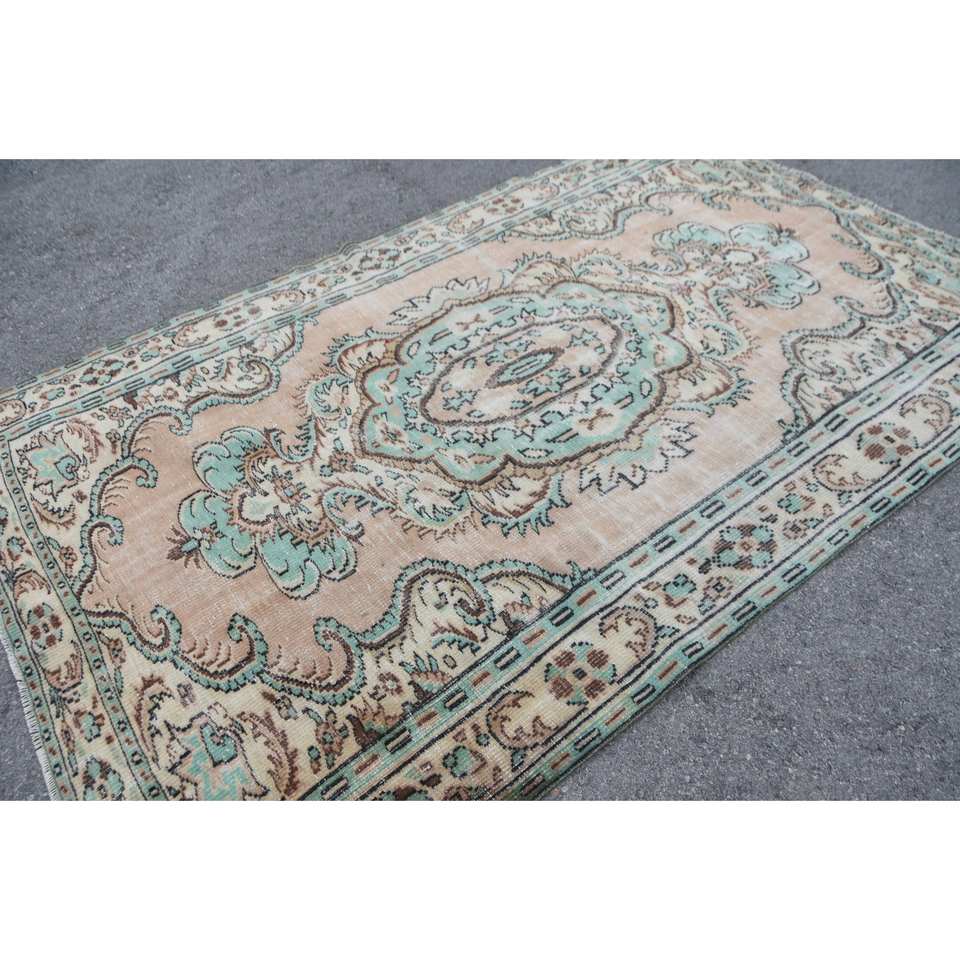 Tapis Turc Vintage Beige Vert 5.8 X 9.2ft Laine Tissage Plat Patchwork Motif pour Salon Décor 4m Largeur avec Support en Latex